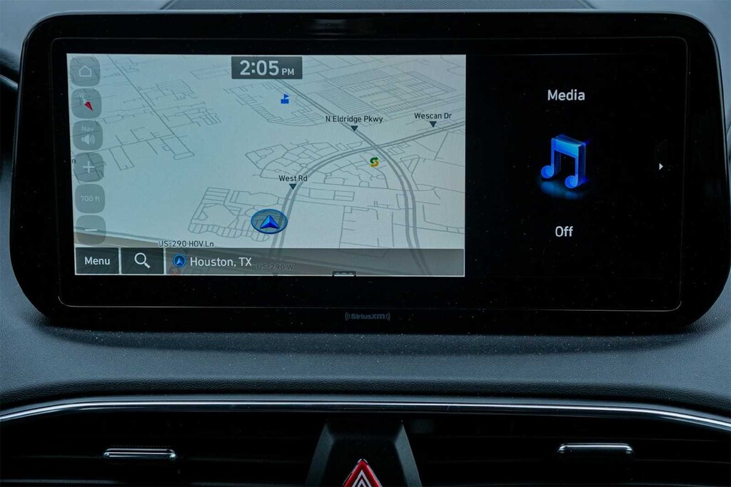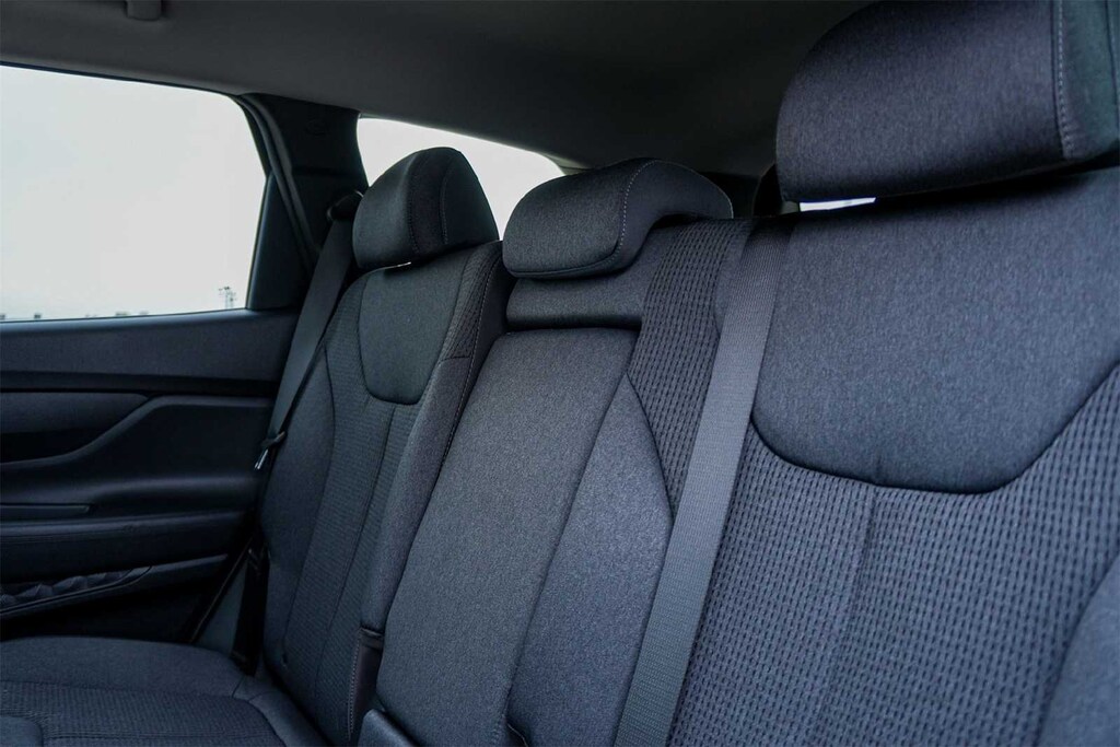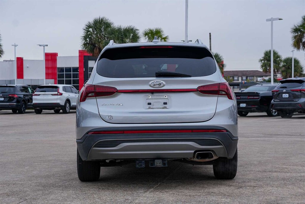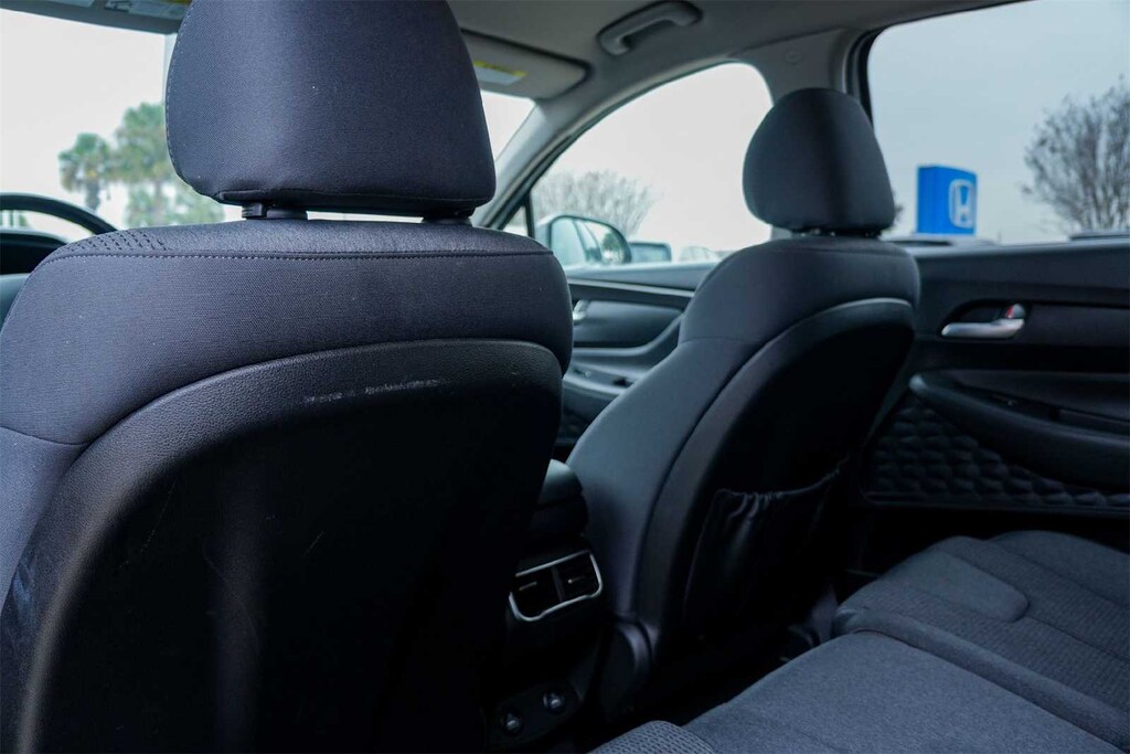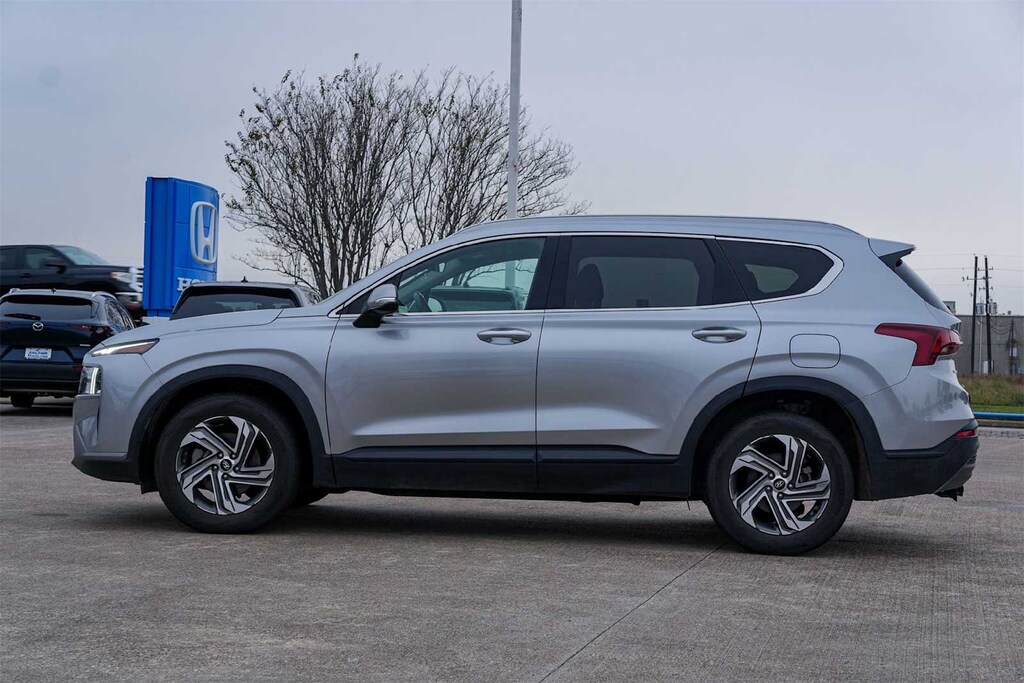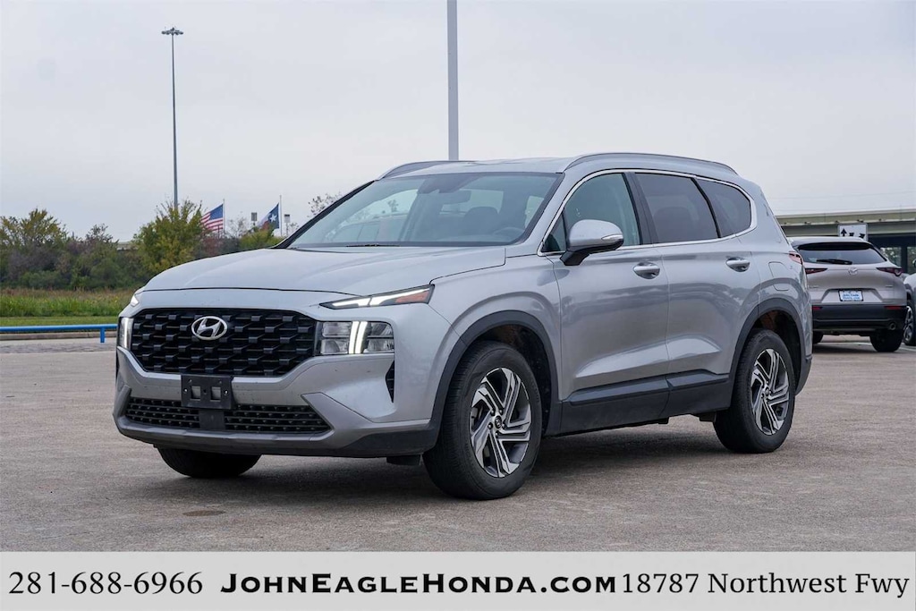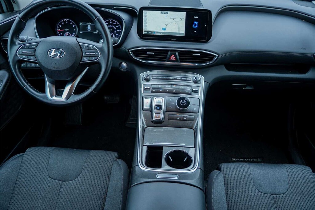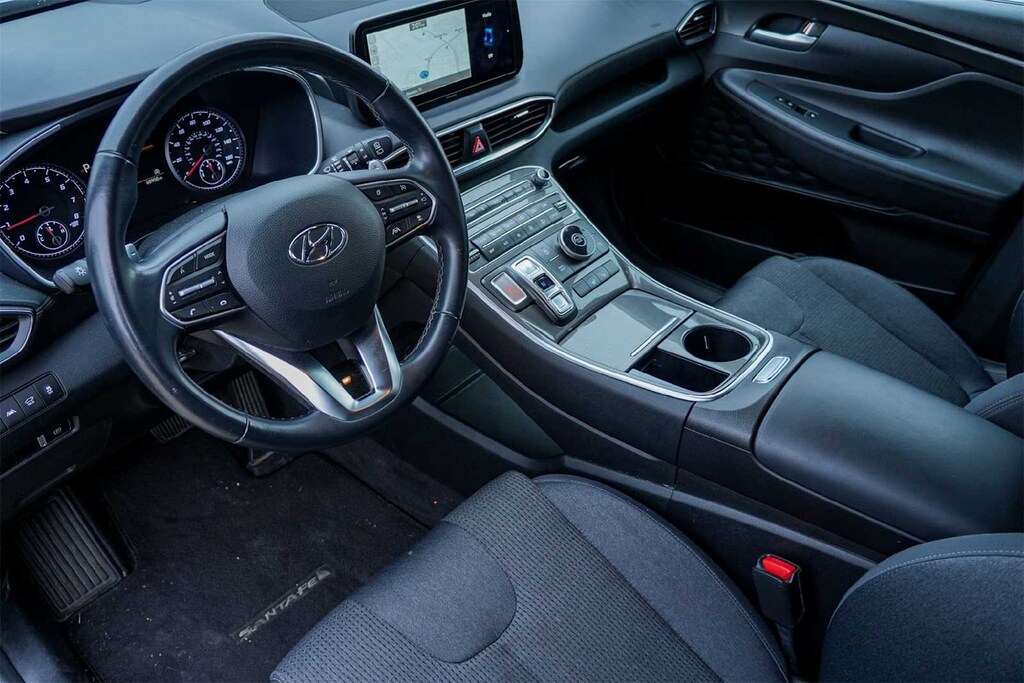 ** APPLE CARPLAY, ** ANDROID AUTO, Santa Fe SEL, 4D Sport Utility, 2.5L I4, 8-Speed Automatic with SHIFTRONIC, FWD, Shimmering Silver Pearl, Black w/Stain-Resistant Cloth Seat Trim, 18 x 7.5J Alloy Wheels, 4-Wheel Disc Brakes, 6 Speakers, ABS brakes, Air Conditioning, Alloy wheels, AM/FM radio: SiriusXM, Apple CarPlay & Android Auto, Auto High-beam Headlights, Automatic temperature control, Axle Ratio: 3.798, Brake assist, Bumpers: body-color, Carpeted Floor Mats, Delay-off headlights, Driver door bin, Driver vanity mirror, Dual front impact airbags, Dual front side impact airbags, Electronic Stability Control, Emergency communication system, Exterior Parking Camera Rear, Four wheel independent suspension, Front anti-roll bar, Front Bucket Seats, Front Center Armrest, Front dual zone A/C, Front reading lights, Fully automatic headlights, Heated door mirrors, Heated Front Bucket Seats, Heated front seats, Illuminated entry, Leather steering wheel, Low tire pressure warning, Navigation System, Occupant sensing airbag, Option Group 01, Outside temperature display, Overhead airbag, Overhead console, Panic alarm, Passenger door bin, Passenger vanity mirror, Power door mirrors, Power driver seat, Power Liftgate, Power steering, Power windows, Radio: AM/FM Display Audio, Rear anti-roll bar, Rear seat center armrest, Rear window defroster, Rear window wiper, Remote keyless entry, Security system, Speed control, Speed-sensing steering, Split folding rear seat, Spoiler, Stain-Resistant Cloth Seat Trim, Steering wheel mounted audio controls, Tachometer, Telescoping steering wheel, Tilt steering wheel, Tow Hitch, Traction control, Trip computer, Turn signal indicator mirrors, Variably intermittent wipers, FORWARD COLLISION, BLIND SPOT, REAR CROSS TRAFFIC, LANE FOLLOWING ASSIST, HEATED SEATS, HIGH BEAM ASSIST, Santa Fe SEL, 4D Sport Utility, 2.5L I4, 8-Speed Automatic with SHIFTRONIC, FWD, Shimmering Silver Pearl, Black w/Stain-Resistant Cloth Seat Trim.