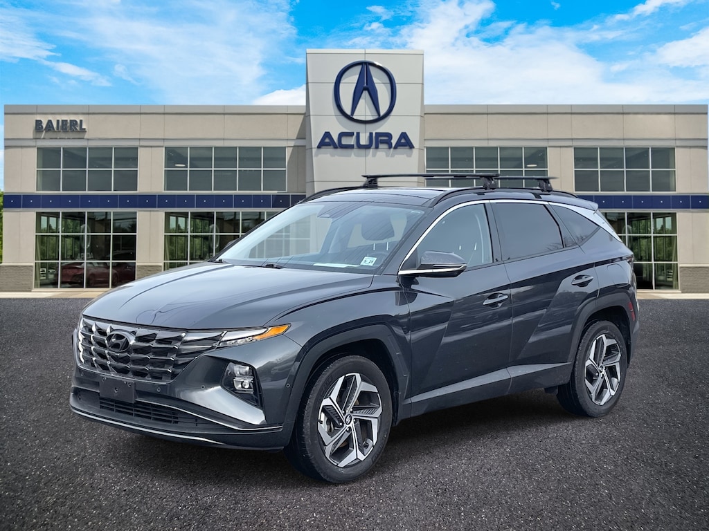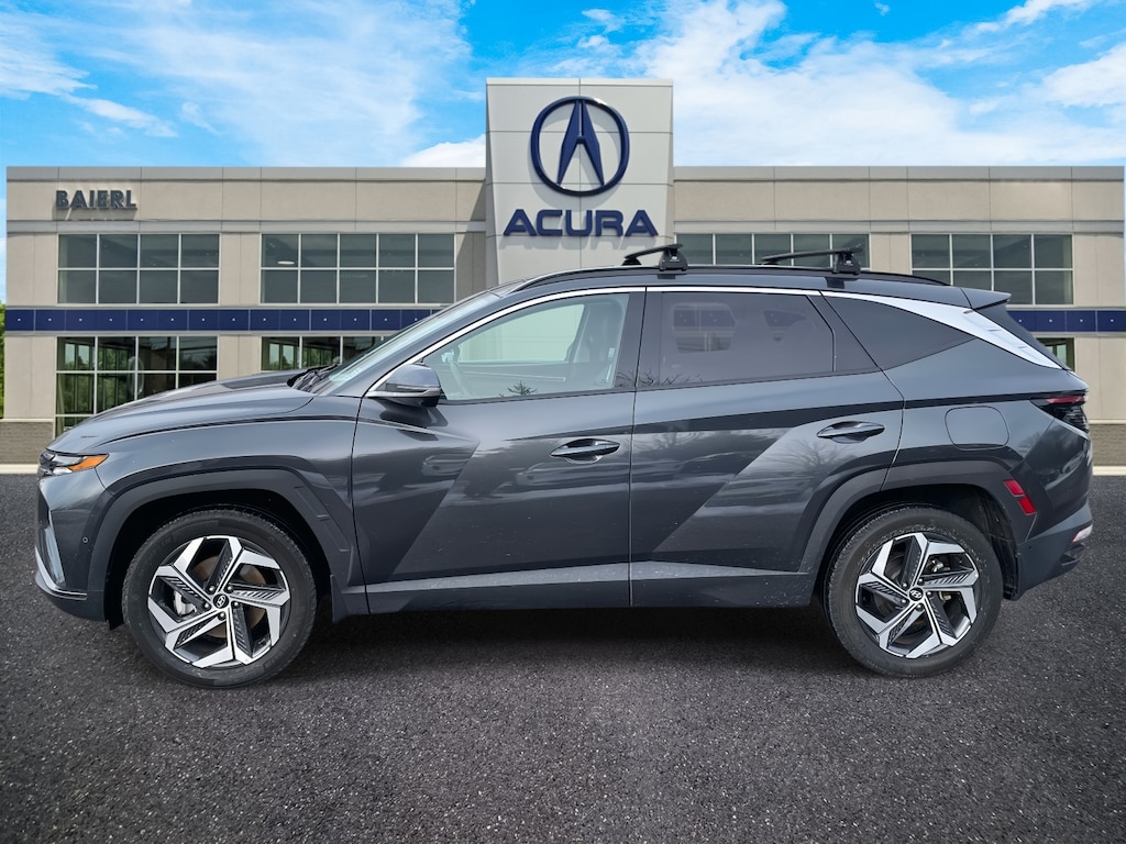 Baierl Acura is pumped up to offer this superb 2023 Hyundai Tucson in Portofino Gray. This vehicle has been through our award winning factory trained service department*** and comes with the following features; Theres no back-and-forth, we offer one fair price, CLEAN ONE OWNER CARFAX, HEATED AND VENTILATED FRONT BUCKET SEATS, HEATED REAR SEATS, HEATED STEERING WHEEL, FACTORY REMOTE START, NAVIGATION SYSTEM, BOSE PREMIUM AM/FM/HD/ SIRIUSXM AUDIO SYSTEM, APPLE CARPLAY / ANDROID AUTO, WIRELESS DEVICE CHARGING, SIRIUSXM, 19 MACHINED FINISHED ALLOY WHEELS, DUAL ZONE CLIMATE CONTROL, SURROUND VIEW CAMERA SYSTEM, SMART CRUISE CONTROL, BLIND SPOT COLLISION AVOIDANCE ASSIST, LANE KEEPING ASSIST, LANE FOLLOWING ASSIST, REAR CROSS TRAFIIC COLLISION AVOIDANCE ASSIST, FRONT AND REAR PARKING DISTANCE WARNING SYSTEM, REMOTE SMART PARKING ASSIST, AWD, 4-Wheel Disc Brakes, 8 Speakers, ABS brakes, AM/FM radio: SiriusXM, Apple CarPlay & Android Auto, Auto High-beam Headlights, Auto-dimming Rear-View mirror, Brake assist, Bumpers: body-color, Cargo Net, Cargo Tray, Carpeted Floor Mats, Delay-off headlights, Driver door bin, Driver vanity mirror, Dual front impact airbags, Dual front side impact airbags, Electronic Stability Control, Emergency communication system: Blue Link Connected Car Service (3-year complimentary subscription), First Aid Kit, Four wheel independent suspension, Front and Rear Mudguards, Front anti-roll bar, Front Center Armrest, Front dual zone A/C, Front reading lights, Fully automatic headlights, Garage door transmitter: HomeLink, Heated & Ventilated Front Bucket Seats, Heated door mirrors, Heated rear seats, Heated steering wheel, Illuminated entry, Leather Seat Trim, Low tire pressure warning, Memory seat, Navigation System, Occupant sensing airbag, Option Group 01, Outside temperature display, Overhead airbag, Overhead console, Passenger door bin, Passenger vanity mirror, Power door mirrors, Power driver seat, Power Liftgate, Power moonroof, Power passenger seat, Power steering, Power windows, Radio: Bose Premium w/AM/FM/HD/SiriusXM Audio System, Rain sensing wipers, Rear anti-roll bar, Rear Bumper Applique, Rear reading lights, Rear seat center armrest, Rear window defroster, Rear window wiper, Remote keyless entry, Roof rack: rails only, Security system, Speed control, Split folding rear seat, Spoiler, Steering wheel mounted audio controls, Tachometer, Telescoping steering wheel, Traction control, Trip computer, Turn signal indicator mirrors, Wheels: 19 x 7.5J Machine-Face Finish Alloy.