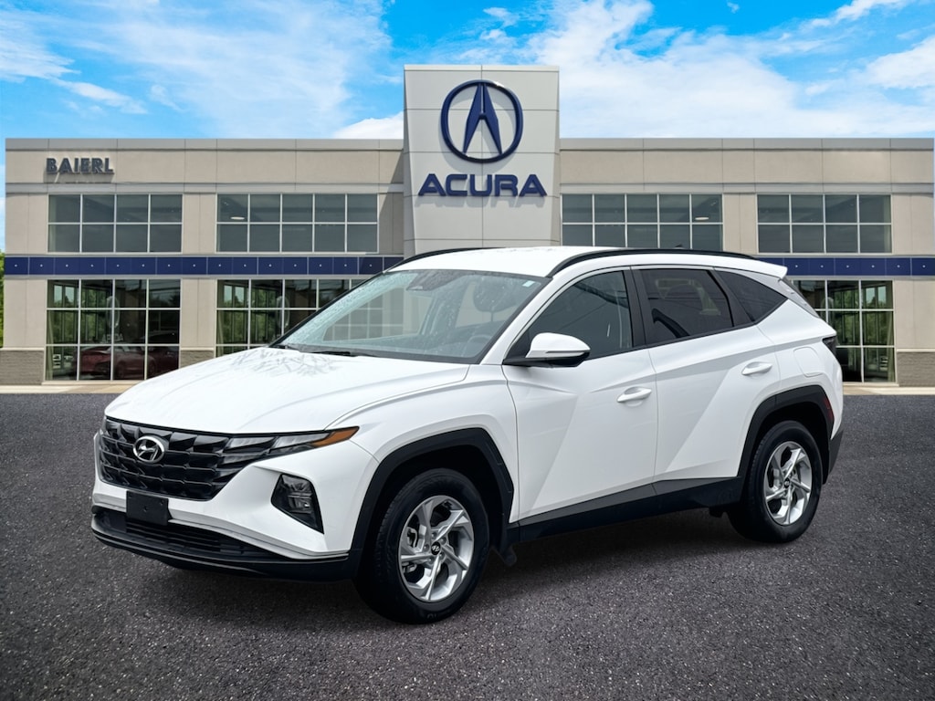 Baierl Acura is very proud to offer this superb-looking 2023 Hyundai Tucson in Serenity White Pearl. This vehicle has been through our award winning factory trained service department*** and comes with the following features; Balance of Factory Warranty, Theres no back-and-forth, we offer one fair price, CLEAN ONE OWNER CARFAX, HEATED FRONT SEATS, BLUELINK REMOTE START AVAILABLE, AM/FM/HD/ SIRIUS XM AUDIO SYSTEM, APPLE CARPLAY / ANDROID AUTO, HANDS FREE SMART POWER LIFTGATE WITH AUTO / OPEN, WIRELESS DEVICE CHARGING, LANE KEEP ASSIST SYSTEM, BLIND SPOT COLLISION AVOIDANCE ASSIST SYSTEM, REAR CROSS TRFFIC COLLISION AVOIDANCE SYSTEM, FORWARD COLLISION AVOIDANCE SYSTEM, AWD, 3.648 Axle Ratio, 4-Wheel Disc Brakes, 6 Speakers, ABS brakes, Air Conditioning, Apple CarPlay & Android Auto, Auto High-beam Headlights, Brake assist, Bumpers: body-color, Cargo Cover, Cargo Net, Cargo Package, Cargo Tray, Carpeted Floor Mats, Delay-off headlights, Driver door bin, Driver vanity mirror, Dual front impact airbags, Dual front side impact airbags, Electronic Stability Control, Emergency communication system: Blue Link Connected Car Service (3-year complimentary subscription), First Aid Kit, Four wheel independent suspension, Front and Rear Mudguards, Front anti-roll bar, Front reading lights, Fully automatic headlights, H-Tex Seat Trim, Heated door mirrors, Heated Front Bucket Seats, Illuminated entry, Low tire pressure warning, Occupant sensing airbag, Option Group 01, Outside temperature display, Overhead airbag, Overhead console, Panic alarm, Passenger door bin, Passenger vanity mirror, Power door mirrors, Power driver seat, Power Liftgate, Power steering, Power windows, Radio data system, Radio: AM/FM/HD/SiriusXM Audio System, Rear anti-roll bar, Rear seat center armrest, Rear window defroster, Rear window wiper, Remote keyless entry, Roof rack: rails only, Security system, Speed control, Split folding rear seat, Spoiler, Stain & Odor Resistant Cloth Seat Trim, Steering wheel mounted audio controls, Tachometer, Telescoping steering wheel, Tilt steering wheel, Traction control, Trip computer, Turn signal indicator mirrors, Variably intermittent wipers, Wheels: 17 x 7.0J Alloy.