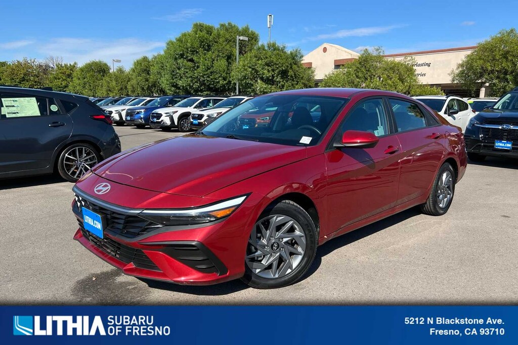 Ultimate Red Metallic 2024 Hyundai Elantra Hybrid Blue FWD 6-Speed Dual Clutch I4 FRESH ENGINE and CABIN FILTERS, FRESH OIL CHANGE, 138 point Lithia inspected, DETAILED INTERIOR AND EXTERIOR FOR DELIVERY, CERTIFIED BY CARFAX - ONE OWNER, Multi Point Safety and Mechanical Inspection Performed by Certified Technician, I4, 4-Wheel Disc Brakes, 6 Speakers, ABS brakes, Air Conditioning, AM/FM radio: SiriusXM, Apple CarPlay & Android Auto, Auto High-beam Headlights, Automatic temperature control, Brake assist, Carpeted Floor Mats, Electronic Stability Control, Emergency communication system: Bluelink+, Exterior Parking Camera Rear, Front anti-roll bar, Front Bucket Seats, Front dual zone A/C, Front wheel independent suspension, Fully automatic headlights, Heated door mirrors, Navigation System, Option Group 01, Outside temperature display, Power door mirrors, Power steering, Power windows, Premium Cloth Seat Trim, Radio: AM/FM/HD/SiriusXM Display Audio, Remote keyless entry, Speed control, Speed-sensing steering, Steering wheel mounted audio controls, Telescoping steering wheel, Tilt steering wheel, Traction control.