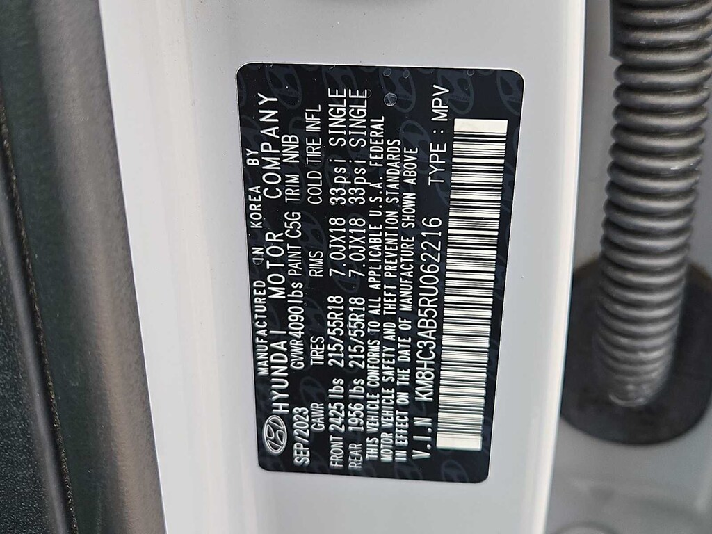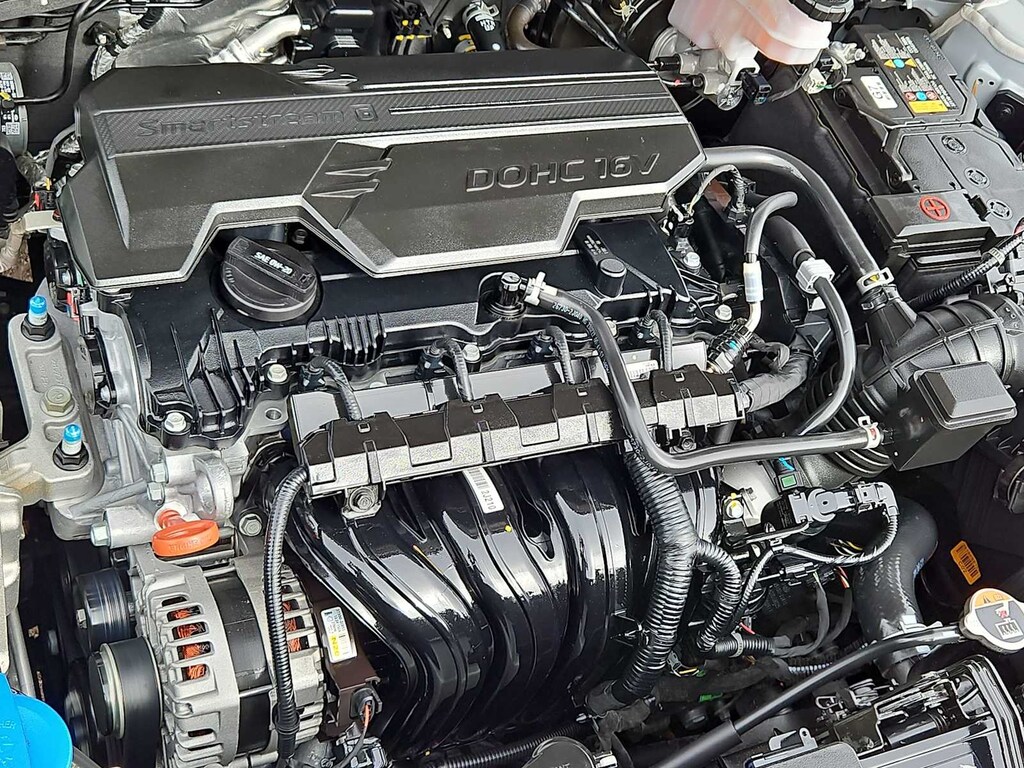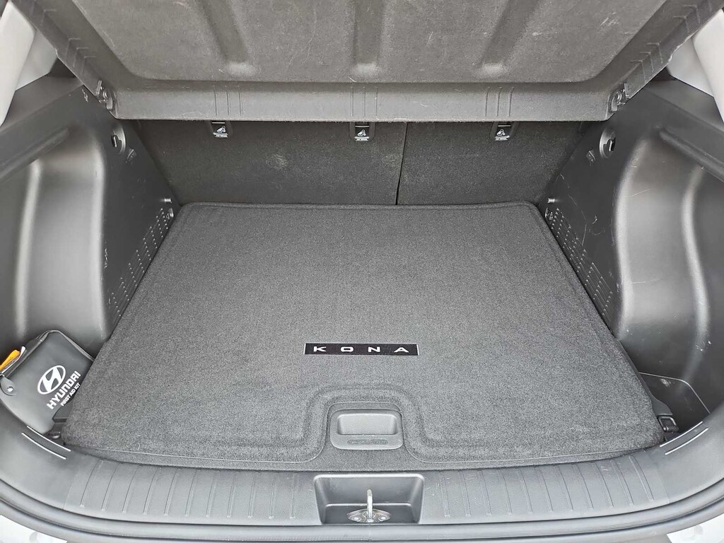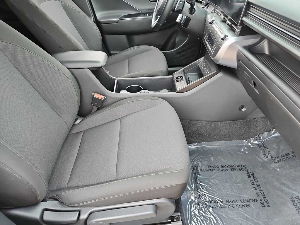 4-Wheel Disc Brakes, 6 Speakers, ABS brakes, Air Conditioning, Alloy wheels, AM/FM radio: SiriusXM, Apple CarPlay & Android Auto, Auto High-beam Headlights, Automatic temperature control, Brake assist, Bumpers: body-color, Cargo Net, Carpeted Floor Mats, Cloth Seat Trim, Convenience Package, Cross Rails, Delay-off headlights, Driver door bin, Driver vanity mirror, Dual front impact airbags, Dual front side impact airbags, Electronic Stability Control, Emergency communication system: Bluelink+, Exterior Parking Camera Rear, First Aid Kit, Front anti-roll bar, Front Bucket Seats, Front Center Armrest, Front dual zone A/C, Front reading lights, Front wheel independent suspension, Fully automatic headlights, Heated door mirrors, Illuminated entry, Leather Shift Knob, Leather steering wheel, Low tire pressure warning, Occupant sensing airbag, Outside temperature display, Overhead airbag, Panic alarm, Passenger door bin, Passenger vanity mirror, Power door mirrors, Power driver seat, Power steering, Power windows, Radio: AM/FM/HD Radio/SiriusXM Audio System, Rear seat center armrest, Rear window defroster, Rear window wiper, Remote keyless entry, Security system, Speed control, Speed-sensing steering, Split folding rear seat, Spoiler, Steering wheel mounted audio controls, Tachometer, Telescoping steering wheel, Tilt steering wheel, Traction control, Trip computer, Turn signal indicator mirrors, Variably intermittent wipers, Wheels: 18 x 7.0J Glossy Black Alloy.