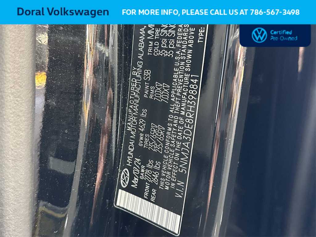 ALL INVENTORY IS ON MIAMI NOT TAMPA. BUY WITH CONFIDENCE! WE LOVE TRADES! HASSLE FREE FINANCE PLANS FOR EVERYONE! PLEASE CALL TO ENSURE AVAILABILITY AS OUR INVENTORY CHANGES BY THE HOUR. AFFORDABLE FINANCE PLANS! EASY FINANCE OPTIONS! ALL INVENTORY IS READY FOR INSTANT DELIVERY! Odometer is 7040 miles below market average! Recent Arrival! NO ACCIDENTS OR ISSUES, COMPLETE 182 POINT MANUFACTURERS INSPECTION, FULL SERVICE PERFORMED, LOW MILES, NAVIGATION SYSTEM, BACK UP CAMERA, LOW PRICE AND A GREAT VALUE, LOOKS AND FEELS LIKE A NEW CAR. Priced below KBB Fair Purchase Price! 25/32 City/Highway MPG Black Pearl 2024 Hyundai Tucson SE 2.5L I4 DGI DOHC 16V LEV3-SULEV30 187hp