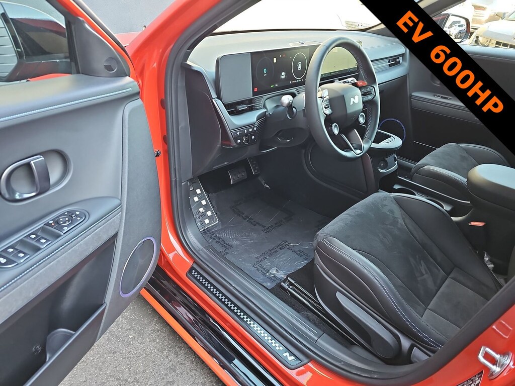 THIS VEHICLE IS EQUIPPED WITH THE FOLLOWING OPTIONS AND FEATURES: 4-Wheel Disc Brakes, 8 Speakers, ABS brakes, Adaptive suspension, Air Conditioning, Alloy wheels, AM/FM radio: SiriusXM, Apple CarPlay & Android Auto, Auto High-beam Headlights, Auto-dimming Rear-View mirror, Automatic temperature control, Bodyside moldings, Brake assist, Bumpers: body-color, Delay-off headlights, Driver door bin, Driver vanity mirror, Dual front impact airbags, Dual front side impact airbags, Eco Alcantara/H-Tex Seating Surfaces, Electronic Stability Control, Emergency communication system: Bluelink+, Four wheel independent suspension, Front anti-roll bar, Front Bucket Seats, Front Center Armrest w/Storage, Front dual zone A/C, Front reading lights, Fully automatic headlights, Garage door transmitter: HomeLink, Heated & Ventilated N Lightweight Sport Bucket Seats, Heated door mirrors, Heated front seats, Heated steering wheel, Illuminated entry, Leather steering wheel, Low tire pressure warning, Navigation System, Occupant sensing airbag, Outside temperature display, Overhead airbag, Panic alarm, Passenger door bin, Passenger vanity mirror, Power door mirrors, Power Liftgate, Power steering, Power windows, Radio: AM/FM/SiriusXM/HD Display Audio System, Rain sensing wipers, Rear anti-roll bar, Rear reading lights, Rear seat center armrest, Rear window defroster, Rear window wiper, Remote keyless entry, Security system, Speed control, Speed-sensing steering, Split folding rear seat, Spoiler, Steering wheel mounted audio controls, Telescoping steering wheel, Tilt steering wheel, Traction control, Trip computer, Turn signal indicator mirrors, Variably intermittent wipers, Ventilated front seats, and Wheels: 21 x 9.5J Forged N Alloy. Recent Arrival! Odometer is 2173 miles below market average! 84/72 City/Highway MPG