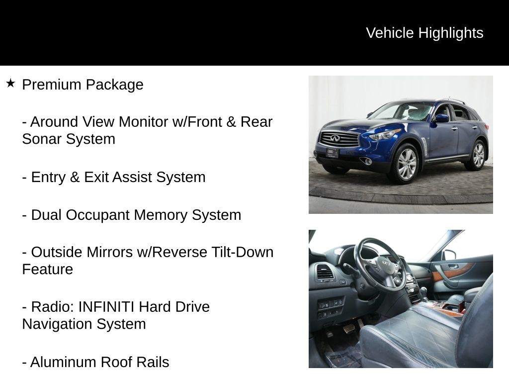 Whether you're commuting, running errands, or embarking on a road trip, this 2015 INFINITI QX70 Base is the perfect companion. Its combination of style, performance, and advanced technology make it a true standout in the luxury crossover segment. We invite you to experience this exceptional vehicle for yourself. Contact us today to schedule a test drive and discover why the QX70 is the perfect choice for your next vehicle.