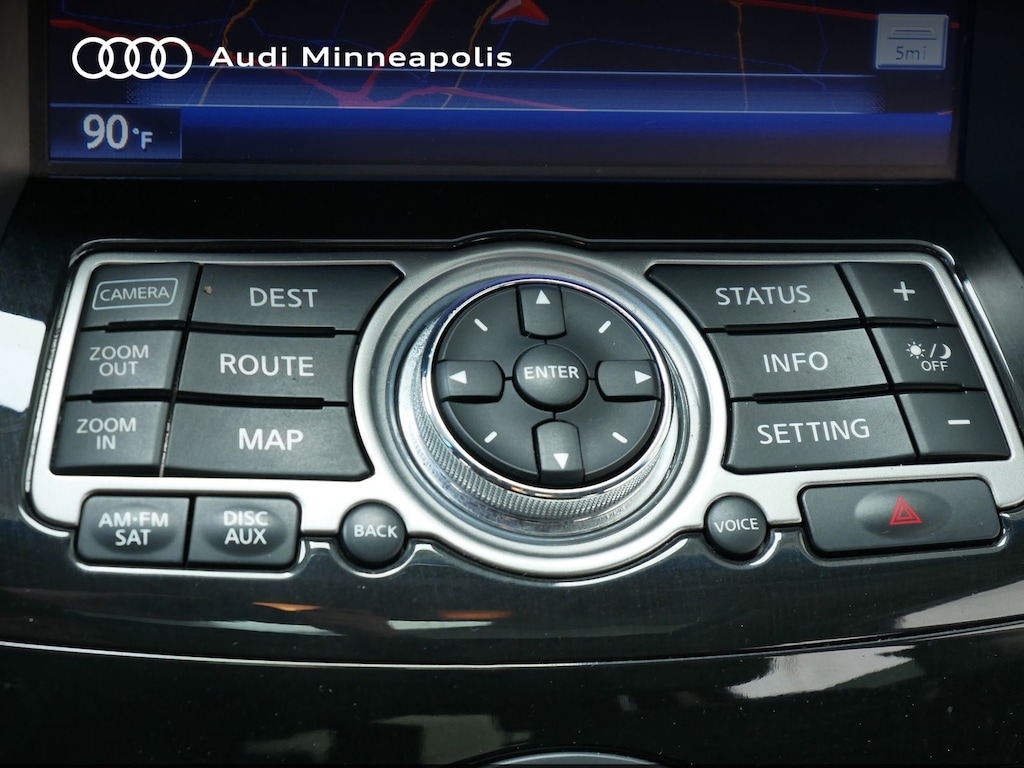 Inside, the cabin is thoughtfully designed with premium materials and cutting-edge technology. Highlights include the INFINITI Hard Drive Navigation System, Around View Monitor with Front and Rear Sonar System, and the Dual Occupant Memory System for the driver's seat, outside mirrors, and steering wheel. The Deluxe Touring Package adds even more luxury, with features like Climate-Controlled Front Seats, Aluminum Pedals, and Maple Interior Accents.