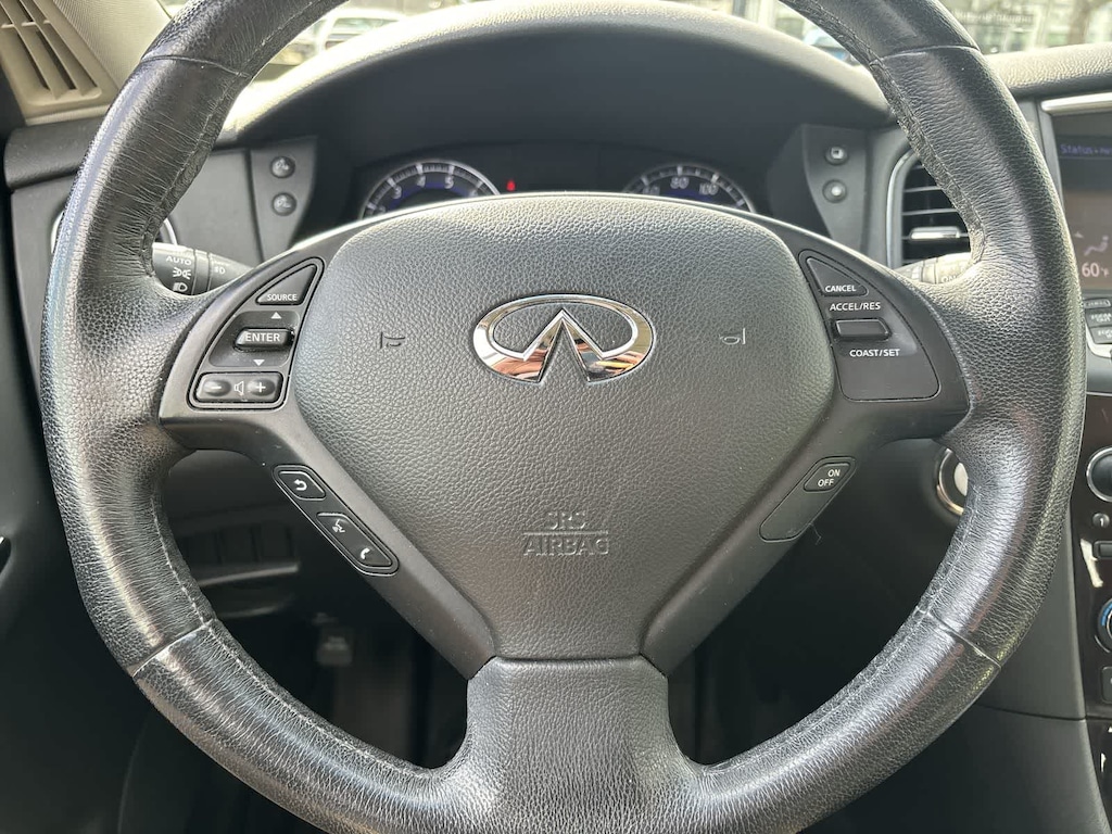PREMIUM PLUS PACKAGE Streaming Audio via Bluetooth® Wireless Technology, Around View Monitor (AVM), front and rear sonar system, INFINITI Navigation System, color touch-screen display, lane guidance and 3-D building graphics, INFINITI voice recognition for audio and navigation, XM NavTraffic w/real-time traffic information and XM NavWeather w/real-time weather and 3-day forecast, PREMIUM PACKAGE Bose 11-Speaker Premium Audio System, Maple Interior Accents, Dual Occupant Memory System For Drivers Seat, outside mirrors and steering wheel, linked to individual Intelligent Keys, entry/exit assist for drivers seat and steering wheel, Advanced Climate Control System (ACCS), Plasmacluster air purifier, Aluminum Roof Rails, Outside Mirrors w/Reverse Tilt-Down Feature, Power Tilt & Telescopic Steering Column, Auto-Dimming Inside Mirror, HomeLink Universal Transceiver, Radio: AM/FM/CD/DVD w/MP3 Playback Capability, Radio Data System (RDS) and speed sensitive volume control. INFINITI QX50 with Black Obsidian exterior and Graphite interior features a V6 Cylinder Engine with 325 HP at 7000 RPM*.