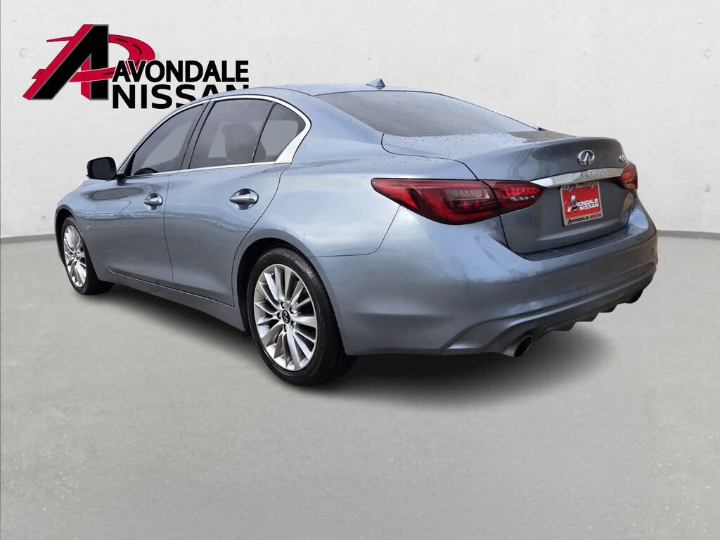 18 x 7.5 Aluminum Alloy Wheels, 4-Wheel Disc Brakes, 6 Speakers, ABS brakes, Air Conditioning, Alloy wheels, AM/FM radio: SiriusXM, Apple CarPlay/Android Auto, Auto-dimming Rear-View mirror, Automatic temperature control, Blind Spot Warning, Brake assist, Bumpers: body-color, CD player, Compass, Delay-off headlights, Driver door bin, Driver vanity mirror, Dual front impact airbags, Dual front side impact airbags, Electronic Stability Control, Four wheel independent suspension, Front anti-roll bar, Front Bucket Seats, Front Center Armrest, Front dual zone A/C, Front fog lights, Front reading lights, Fully automatic headlights, Garage door transmitter: HomeLink, Heated door mirrors, Illuminated entry, Leather Shift Knob, Leather steering wheel, Leatherette Seating Surfaces, Literature Kit, Low tire pressure warning, Occupant sensing airbag, Outside temperature display, Overhead airbag, Overhead console, Panic alarm, Passenger door bin, Passenger vanity mirror, Power door mirrors, Power driver seat, Power moonroof, Power passenger seat, Power steering, Power windows, Radio data system, Radio: INFINITI InTouch w/AM/FM/HD/CD, Rain sensing wipers, Rear anti-roll bar, Rear reading lights, Rear seat center armrest, Rear window defroster, Remote keyless entry, Security system, Speed control, Speed-Sensitive Wipers, Steering wheel mounted audio controls, Tachometer, Telescoping steering wheel, Tilt steering wheel, Traction control, Trip computer, Turn signal indicator mirrors, and Variably intermittent wipers. Hagane Blue 2020 INFINITI Q50 3.0t LUXE Priced below KBB Fair Purchase Price! RWD 7-Speed Automatic with Overdrive 3.0L V6