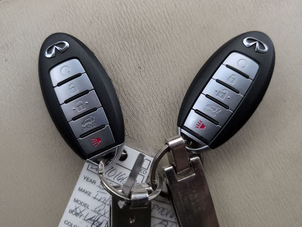This QX80 LUXE is nicely equipped with All-Season Package (All-Season Floor Mats and Cargo Protector), Cargo Package (First-Aid Kit, High-Density Non-Slip Rear Cargo Carpet, and Nylon-Cord Cargo Net), 13 Speakers, 2.937 Axle Ratio, 3rd row seats: split-bench, 4-Wheel Disc Brakes, ABS brakes, Air Conditioning, Alloy wheels, AM/FM radio: SiriusXM, Anti-whiplash front head restraints, Apple CarPlay/Android Auto, Auto High-beam Headlights, Auto tilt-away steering wheel, Auto-dimming door mirrors, Auto-dimming Rear-View mirror, Auto-leveling suspension, Automatic temperature control, Blind Spot Warning, Brake assist, Bumpers: body-color, CD player, Compass, Delay-off headlights, Driver door bin, Driver vanity mirror, Dual front impact airbags, Dual front side impact airbags, DVD-Audio, Electronic Stability Control, Emergency communication system: INFINITI Connection, Four wheel independent suspension, Front anti-roll bar, Front Bucket Seats, Front Center Armrest, Front dual zone A/C, Front fog lights, Front reading lights, Fully automatic headlights, Garage door transmitter: HomeLink, Heated door mirrors, Heated Front Bucket Seats, Heated front seats, Heated steering wheel, Illuminated entry, Leather Shift Knob, Leather steering wheel, Leather-Appointed Seats, Literature Kit, Low tire pressure warning, Memory seat, Navigation system: INFINITI InTouch Navigation, Occupant sensing airbag, Outside temperature display, Overhead airbag, Overhead console, Panic alarm, Passenger door bin, Passenger vanity mirror, Power door mirrors, Power driver seat, Power Liftgate, Power moonroof, Power passenger seat, Power steering, Power windows, Radio data system, Radio: AM/FM/HD w/Single In-Dash CD Player & MP3, Rain sensing wipers, Rear air conditioning, Rear anti-roll bar, Rear audio controls, Rear reading lights, Rear seat center armrest, Rear window defroster, Rear window wiper, Reclining 3rd row seat, Remote keyless entry, Roof Rail Cross Bars, Security system, Speed control, Speed-sensing steering, Split folding rear seat, Spoiler, Steering wheel memory, Steering wheel mounted audio controls, Tachometer, Telescoping steering wheel, Tilt steering wheel, Traction control, Trip computer, Turn signal indicator mirrors, Variably intermittent wipers, Voltmeter, and Wheels: 20 x 8.0 Aluminum-Alloy. Price does not include licensing costs, registration fees, taxes and dealer doc fee of $899.50 which are to be paid by the consumer.