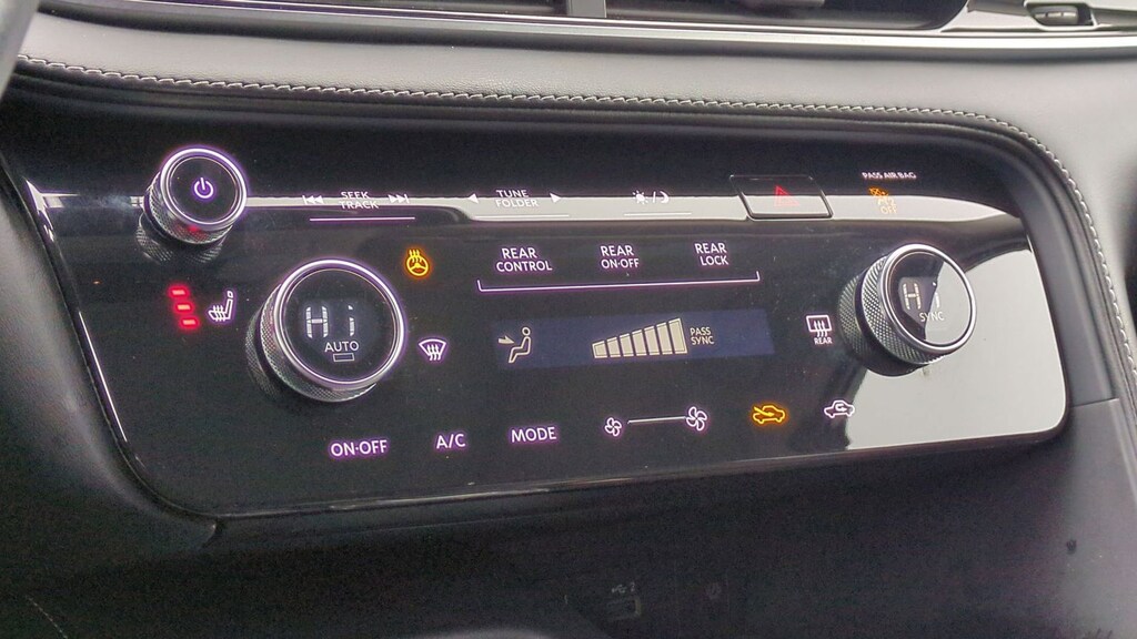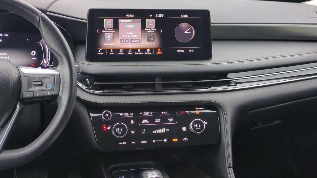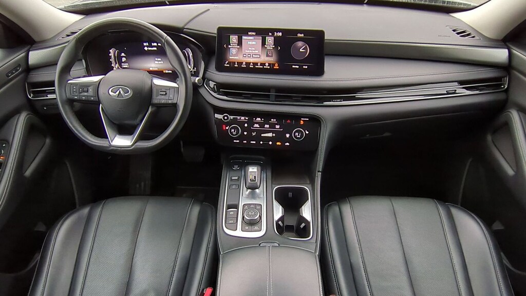 Clean CARFAX. 2023 INFINITI QX60 LUXE Is nicely equipped with 3rd row seats: bench, 4-Wheel Disc Brakes, 4.334 Axle Ratio, 9 Speakers, ABS brakes, Air Conditioning, Alloy wheels, AM/FM radio: SiriusXM, Anti-whiplash front head restraints, Auto High-beam Headlights, Auto-dimming door mirrors, Auto-dimming Rear-View mirror, Automatic temperature control, Brake assist, Bumpers: body-color, Climate-Controlled Front Bucket Seats, Delay-off headlights, Driver door bin, Driver vanity mirror, Dual front impact airbags, Dual front side impact airbags, Electronic Stability Control, Emergency communication system, Four wheel independent suspension, Front anti-roll bar, Front Bucket Seats, Front Center Armrest, Front dual zone A/C, Front reading lights, Fully automatic headlights, Garage door transmitter: HomeLink, Heated door mirrors, Heated front seats, Heated steering wheel, Illuminated entry, Knee airbag, Leather Shift Knob, Leather steering wheel, Leather-Appointed Seating Surfaces, Low tire pressure warning, Memory seat, Navigation system: INFINITI InTouch Navigation, Occupant sensing airbag, Outside temperature display, Overhead airbag, Overhead console, Panic alarm, Passenger door bin, Passenger vanity mirror, Power door mirrors, Power driver seat, Power Liftgate, Power moonroof, Power passenger seat, Power steering, Power windows, Radio data system, Radio: AM/FM Audio System, Rain sensing wipers, Rear air conditioning, Rear anti-roll bar, Rear reading lights, Rear seat center armrest, Rear side impact airbag, Rear window defroster, Rear window wiper, Reclining 3rd row seat, Remote keyless entry, Security system, Speed control, Speed-sensing steering, Speed-Sensitive Wipers, Split folding rear seat, Spoiler, Steering wheel memory, Steering wheel mounted audio controls, Tachometer, Telescoping steering wheel, Tilt steering wheel, Traction control, Trip computer, Turn signal indicator mirrors, Variably intermittent wipers, Ventilated front seats, and Wheels: 20" x 8J Sporty Machined Aluminum Alloy.