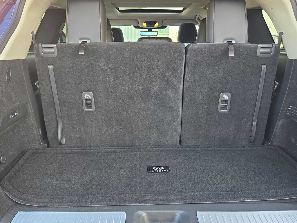 BUY WITH CONFIDENCE! WE LOVE TRADES! HASSLE FREE FINANCE PLANS FOR EVERYONE! PLEASE CALL TO ENSURE AVAILABLITY AS OUR INVENTORY CHANGES BY THE HOUR. Clean CARFAX. 10.8 Head-Up Display, 17 Speakers, 3rd row seats: bench, 4-Wheel Disc Brakes, 4.334 Axle Ratio, ABS brakes, Adaptive Front Lighting System, Air Conditioning, Alloy wheels, AM/FM radio: SiriusXM, Anti-whiplash front head restraints, Auto High-beam Headlights, Auto-dimming door mirrors, Auto-dimming Rear-View mirror, Automatic temperature control, Bose Performance Series 17-Speaker Sound System, Brake assist, Bumpers: body-color, Cargo Mat (Reversible), Cargo Package, Climate-Controlled Front Bucket Seats, Delay-off headlights, Driver door bin, Driver vanity mirror, Dual front impact airbags, Dual front side impact airbags, Electronic Stability Control, Emergency communication system, First Aid Kit, Floor Mats on Bench Seats w/3rd Row Tray, Four wheel independent suspension, Front anti-roll bar, Front Bucket Seats, Front Center Armrest, Front dual zone A/C, Front reading lights, Fully automatic headlights, Garage door transmitter: HomeLink, Heated door mirrors, Heated front seats, Heated rear seats, Heated steering wheel, Illuminated entry, Illuminated Kick Plate, Knee airbag, Leather Shift Knob, Leather steering wheel, Leather-Appointed Seating Surfaces, Literature Kit, Low tire pressure warning, Memory seat, Navigation system: INFINITI InTouch Navigation, Occupant sensing airbag, Outside temperature display, Overhead airbag, Overhead console, Panic alarm, Passenger door bin, Passenger vanity mirror, Power door mirrors, Power driver seat, Power Liftgate, Power moonroof, Power passenger seat, Power steering, Power windows, Radio data system, Radio: AM/FM Audio System, Rain sensing wipers, Rear air conditioning, Rear anti-roll bar, Rear reading lights, Rear seat center armrest, Rear side impact airbag, Rear window defroster, Rear window wiper, Reclining 3rd row seat, Remote keyless entry, Security system, Silver Cross Bar, Smart Rear View Mirror, Speed control, Speed-sensing steering, Speed-Sensitive Wipers, Splash Guards, Split folding rear seat, Spoiler, Steering wheel memory, Steering wheel mounted audio controls, Tachometer, Telescoping steering wheel, Tilt steering wheel, Traction control, Trip computer, Turn signal indicator mirrors, Variably intermittent wipers, Ventilated front seats, Vision Package, Wheels: 20 x 8J Luxury Machined Aluminum Alloy.