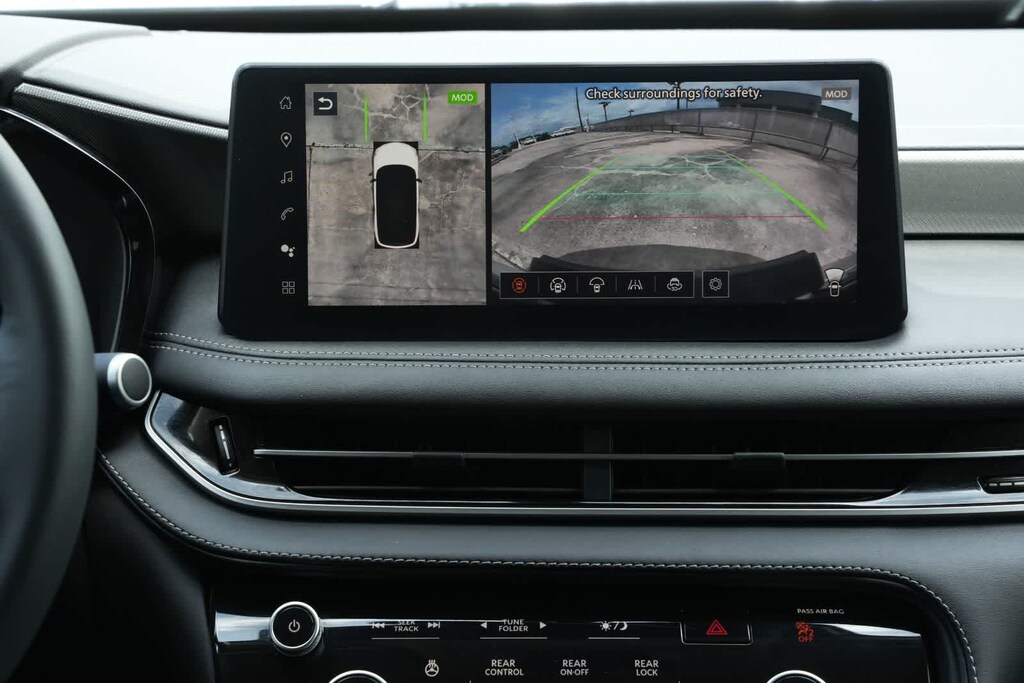 ABS brakes, Active Cruise Control, Alloy wheels, Electronic Stability Control, Front dual zone A/C, Heated door mirrors, Heated front seats, Heated rear seats, Illuminated entry, Low tire pressure warning, Navigation System, Power Liftgate, Remote keyless entry, Traction control, 16 Speakers, 3rd row seats: bench, 4-Wheel Disc Brakes, Air Conditioning, AM/FM radio: SiriusXM with 360L, Anti-whiplash front head restraints, Apple CarPlay/Android Auto, Auto High-beam Headlights, Auto tilt-away steering wheel, Auto-dimming door mirrors, Auto-dimming Rear-View mirror, Automatic temperature control, Bose Performance Series 17-Speaker Sound System, Brake assist, Bumpers: body-color, Climate Controlled Front Bucket Seats, Delay-off headlights, Driver door bin, Driver vanity mirror, Dual front impact airbags, Dual front side impact airbags, Emergency communication system: INFINITI InTouch, Four wheel independent suspension, Front anti-roll bar, Front Bucket Seats, Front Center Armrest, Front reading lights, Fully automatic headlights, Garage door transmitter: HomeLink, Heated steering wheel, Knee airbag, Leather Shift Knob, Leather steering wheel, Memory seat, Navigation system: Google Built-in, Occupant sensing airbag, Outside temperature display, Overhead airbag, Overhead console, Panic alarm, Passenger door bin, Passenger vanity mirror, Power door mirrors, Power driver seat, Power moonroof: Panoramic, Power passenger seat, Power steering, Power windows, Radio data system, Radio: Klipsch Premium Audio System, Rain sensing wipers, Rear air conditioning, Rear anti-roll bar, Rear reading lights, Rear seat center armrest, Rear side impact airbag, Rear window defroster, Rear window wiper, Reclining 3rd row seat, Security system, Speed control, Speed-sensing steering, Speed-Sensitive Wipers, Split folding rear seat, Spoiler, Steering wheel memory, Steering wheel mounted audio controls, Tachometer, Tailorfit-Appointed Seating Surfaces, Telescoping steering wheel, Tilt steering wheel, Trip computer, Turn signal indicator mirrors, Variably intermittent wipers, Ventilated front seats, Wheels: 20 x 8J Machined Aluminum Alloy, **LEATHER SEATS**, **3RD-ROW SEATS**, **HEATED SEATS**, **REARVIEW CAMERA**, **NAVIGATION SYSTEM**, **KEYLESS ENTRY**, **APPLE CARPLAY**, ABS brakes, Active Cruise Control, Alloy wheels, Electronic Stability Control, Front dual zone A/C, Heated door mirrors, Heated front seats, Heated rear seats, Illuminated entry, Low tire pressure warning, Navigation System, Power Liftgate, Remote keyless entry, Traction control.