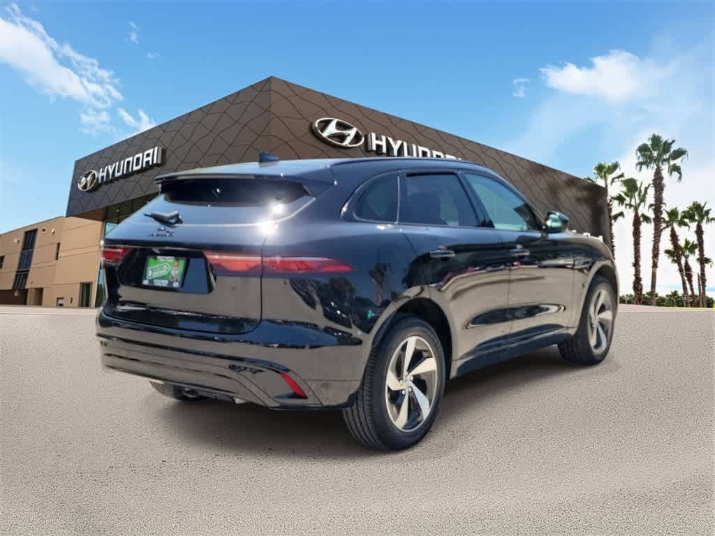 CARFAX One-Owner. Santorini Black Metallic 2025 Jaguar F-PACE P250 R-Dynamic S **R-DYNAMIC S**AWD** AWD Automatic 2.0L I4 Turbocharged 22/27 City/Highway MPG **FAST AND FUN WITH STYLE**, **ONE OWNER**, **MOONROOF / SUNROOF**, **LEATHER**, **NAVI / NAVIGATION /GPS**, **BACKUP CAMERA**, **APPLE CAR PLAY**, 13 Speakers, 3.73 Axle Ratio, 4-Wheel Disc Brakes, ABS brakes, Air Conditioning, Alloy wheels, AM/FM radio: SiriusXM, Apple CarPlay/Android Auto, Auto High-beam Headlights, Auto tilt-away steering wheel, Auto-dimming door mirrors, Auto-dimming Rear-View mirror, Automatic temperature control, Brake assist, Bumpers: body-color, Compass, Delay-off headlights, Driver door bin, Driver vanity mirror, Dual front impact airbags, Dual front side impact airbags, Electronic Stability Control, Emergency communication system: Remote SOS Emergency Call, Exterior Parking Camera Rear, Four wheel independent suspension, Front anti-roll bar, Front Bucket Seats, Front Center Armrest, Front dual zone A/C, Front reading lights, Fully automatic headlights, Garage door transmitter: HomeLink, Heated door mirrors, Heated front seats, Heated Front Sport Seats, Heated steering wheel, Illuminated entry, Leather Shift Knob, Leather steering wheel, Low tire pressure warning, Memory seat, Navigation system: Pivi Pro (Connected Navigation), Occupant sensing airbag, Outside temperature display, Overhead airbag, Overhead console, Panic alarm, Passenger door bin, Passenger vanity mirror, Perforated DuoLeather Seat Trim, Power door mirrors, Power driver seat, Power Liftgate, Power moonroof, Power passenger seat, Power steering, Power windows, Radio data system, Radio: Meridian 400W Sound System, Rain sensing wipers, Rear anti-roll bar, Rear fog lights, Rear reading lights, Rear seat center armrest, Rear window defroster, Rear window wiper, Remote keyless entry, Security system, Speed control, Speed-sensing steering, Split folding rear seat, Spoiler, Sport steering wheel, Steering wheel memory, Steering wheel mounted audio controls, Tachometer, Telescoping steering wheel, Tilt steering wheel, Traction control, Trip computer, Turn signal indicator mirrors, Variably intermittent wipers, Wheels: 19 Diamond Turned (Style 5103).