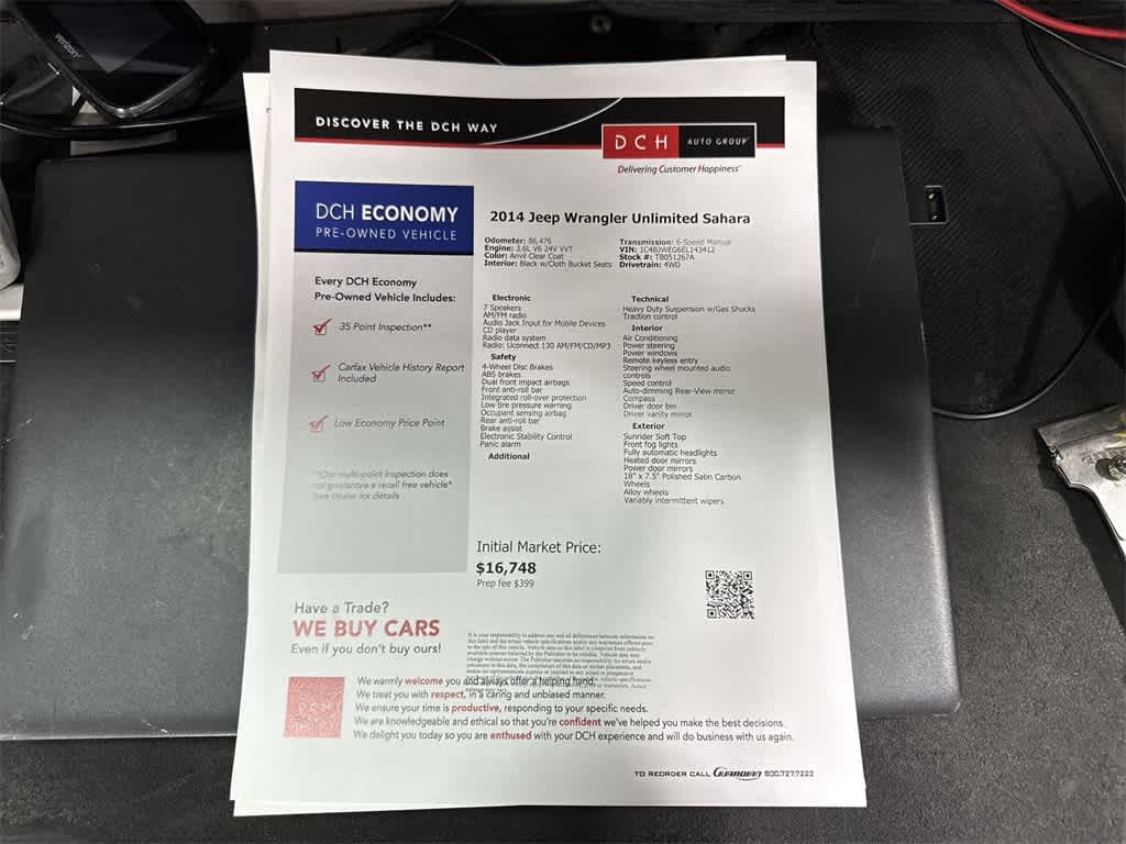 Anvil Clear Coat 2014 Jeep Wrangler Unlimited Sahara 4WD 6-Speed Manual 3.6L V6 24V VVT