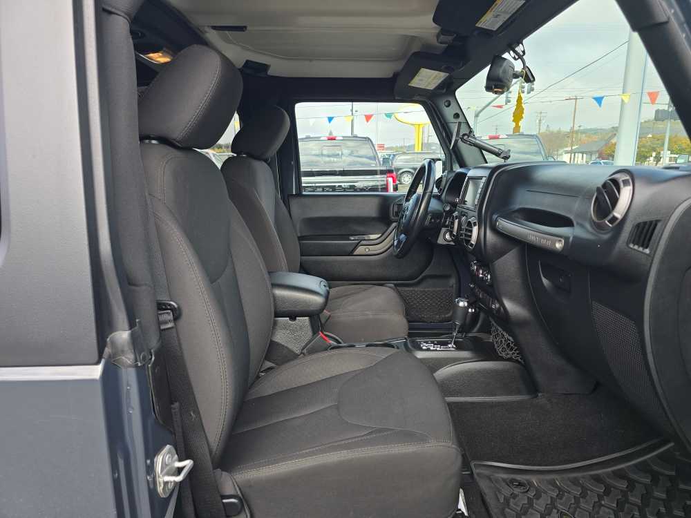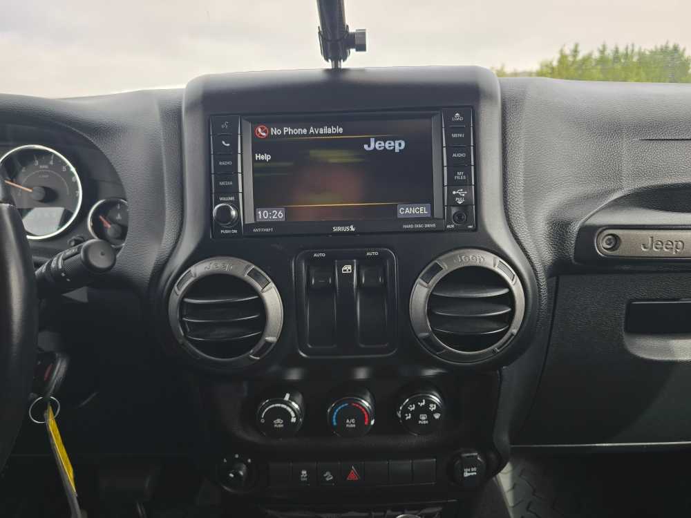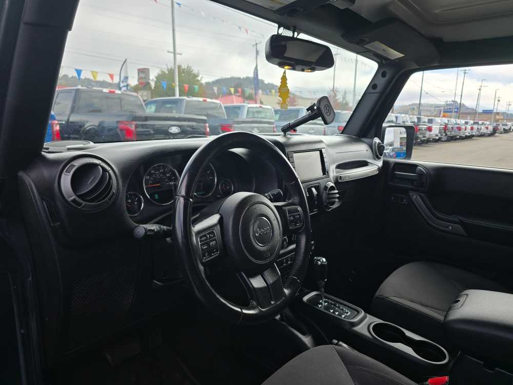 QUICK ORDER PACKAGE 24S Engine: 3.6L V6 24V VVT, Transmission: 5-Speed Automatic (W5A580), Air Conditioning, Wheels: 17 x 7.5 Aluminum, Tires: 17, Leather Wrapped Steering Wheel, Chrome/Leather Wrapped Shift Knob, POWER CONVENIENCE GROUP Auto Dim Mirror w/Reading Lamp, Front 1-Touch Down Power Windows, Power Heated Mirrors, Security Alarm, Power Locks, Remote Keyless Entry, TRANSMISSION: 5-SPEED AUTOMATIC (W5A580) Tip Start, Hill Descent Control, BLACK 3-PIECE HARD TOP Freedom Panel Storage Bag, Rear Window Defroster, Rear Window Wiper/Washer, Tinted Rear Quarter & Liftgate Windows, Delete Sunrider Soft Top, ALPINE 9-SPEAKER W/ALL WEATHER SUBWOOFER Amplified 552W 9 speaker, including subwoofer, CONNECTIVITY GROUP Vehicle Information Center, Remote USB Port, Uconnect Voice Command w/Bluetooth®, Tire Pressure Monitoring Display, RADIO: 430 Remote USB Port, TRAILER TOW GROUP Class II Receiver Hitch, Trailer Tow w/4-Pin Connector Wiring, DEEP TINT SUNSCREEN WINDOWS, TUBULAR SIDE STEPS, SIRIUS SATELLITE RADIO, For More Info Call 888-539-7474, ENGINE: 3.6L V6 24V VVT (STD). 2016 Jeep Wrangler with Rhino Clearcoat exterior and Black interior features a V6 Cylinder Engine with 285 HP at 6400 RPM*. Non-Smoker vehicle