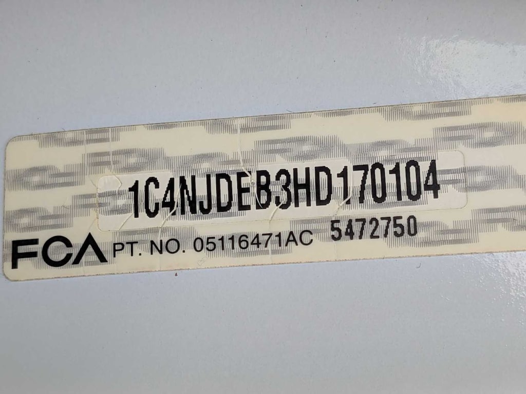 Quick Order Package 23P High Altitude (Body Color Fascias w/Bright Insert, Bright Exhaust Tip, Bright Side Roof Rails, Leather Trimmed Bucket Seats, Manual Driver Lumbar Adjust, Power 6-Way Driver Seat, Power Express Open/Close Sunroof, Remote Start System, and Wheels: 17 x 6.5 Granite Painted Pocket), 17 x 6.5 Aluminum Wheels, 3.37 Axle Ratio, 4 Speakers, 4-Wheel Disc Brakes, 40GB Hard Drive w/28GB Available, 6.5 Touchscreen Display, ABS brakes, Air Conditioning, Alloy wheels, AM/FM radio: SiriusXM, Anti-whiplash front head restraints, Audio Jack Input for Mobile Devices, Auto-dimming Rear-View mirror, AutoStick Automatic Transmission, Brake assist, Bumpers: body-color, CD player, Cloth/Vinyl Low-Back Bucket Seats, Driver door bin, Driver vanity mirror, Dual front impact airbags, Dual front side impact airbags, Electronic Stability Control, Four wheel independent suspension, Front anti-roll bar, Front Bucket Seats, Front Center Armrest w/Storage, Front fog lights, Front reading lights, Fully automatic headlights, Heated door mirrors, Heated front seats, Illuminated entry, Low tire pressure warning, Occupant sensing airbag, Outside temperature display, Overhead airbag, Panic alarm, ParkView Rear Back-Up Camera, Passenger door bin, Passenger vanity mirror, Power door mirrors, Power steering, Power windows, Radio: 130, Radio: 430, Rear anti-roll bar, Rear window defroster, Rear window wiper, Remote keyless entry, Roof rack: rails only, Speed control, Split folding rear seat, Spoiler, Steering wheel mounted audio controls, Tachometer, Tilt steering wheel, Tip Start, Traction control, and Variably intermittent wipers.