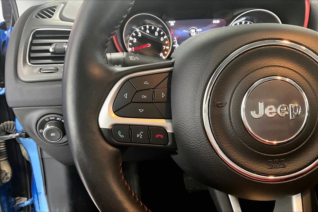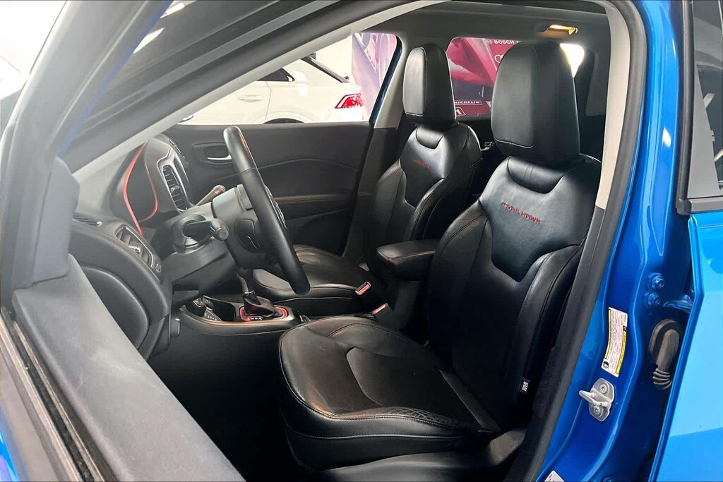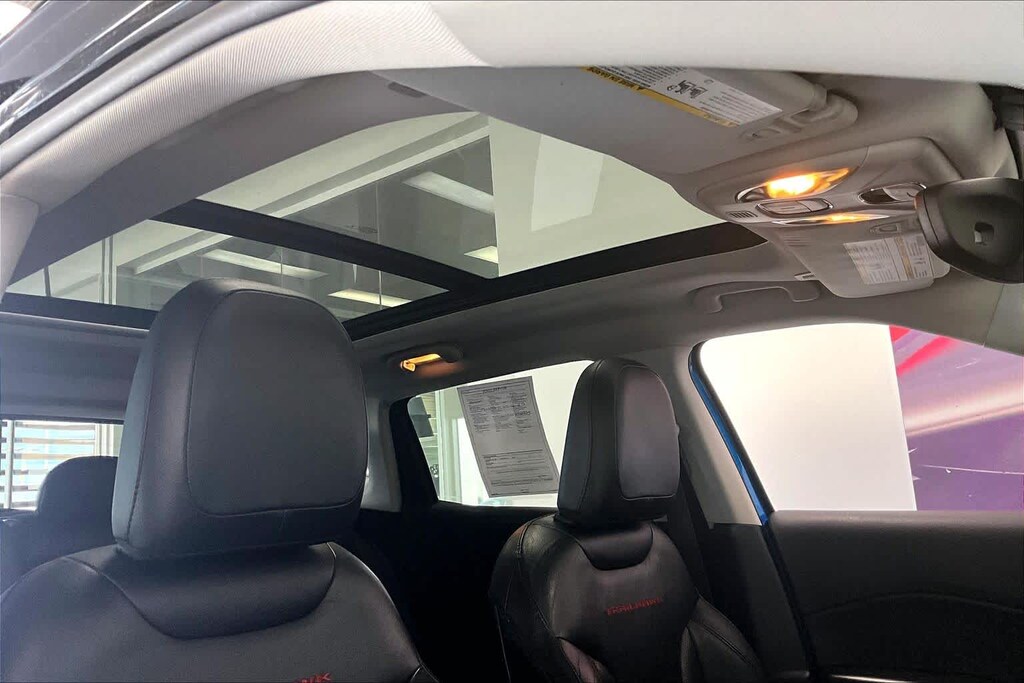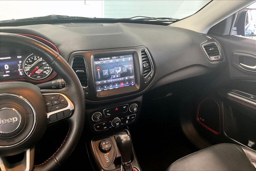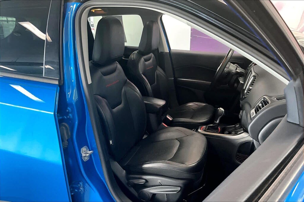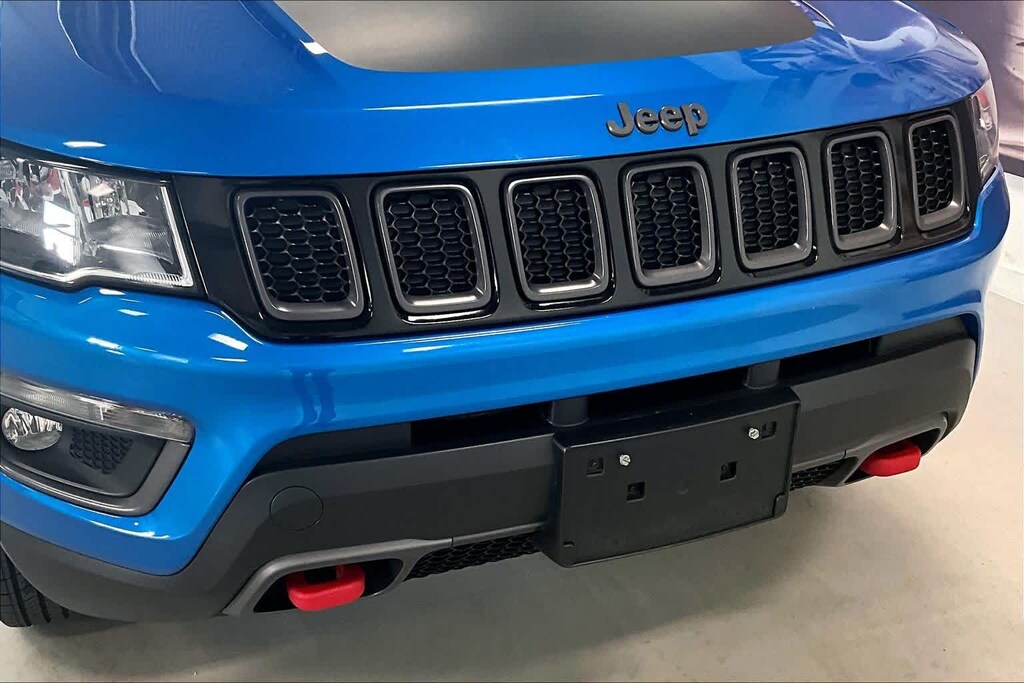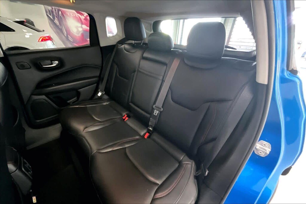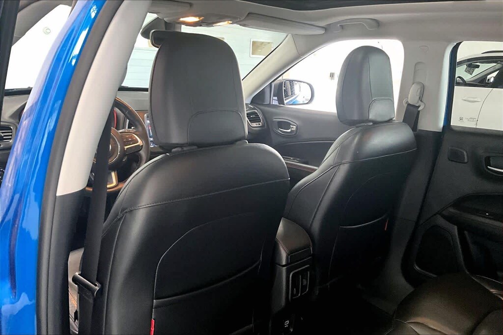 New Compass Trailhawk is nicely equipped with Leather Interior Group (4-Way Power Lumbar Adjust, Heated Front Seats, Heated Steering Wheel, Leather w/Perforated Insert Bucket Seats, Leather Wrapped Steering Wheel, and Power 8-Way Driver/Manual 6-Way Passenger Seats), Navigation Group (1-Year SiriusXM Guardian Trial, 5-Year SiriusXM Traffic Service, 5-Year SiriusXM Travel Link Service, For Details Visit DriveUconnect.com, GPS Navigation, HD Radio, Radio: Uconnect 4C Nav w/8.4 Display, SiriusXM Traffic Plus, and SiriusXM Travel Link), Popular Equipment Group (Auto-Dimming Rear-View Mirror and Remote Start System), Quick Order Package 2XE, Safe & Security Group (Blind Spot & Cross Path Detection, ParkSense Rear Park Assist System, Rain Sensitive/Intermittent Wipers, and Security Alarm), Trailer Tow Group (7 & 4 Pin Wiring Harness and Class III Receiver Hitch), 4-Wheel Disc Brakes, 4.334 Axle Ratio, 6 Speakers, ABS brakes, Air Conditioning, Alloy wheels, AM/FM radio: SiriusXM, Anti-whiplash front head restraints, Apple CarPlay/Google Android Auto, Automatic temperature control, Beats Premium Audio System, Block heater, Brake assist, Bumpers: body-color, Compass, Delay-off headlights, Driver door bin, Driver vanity mirror, Dual front impact airbags, Dual front side impact airbags, Electronic Stability Control, Four wheel independent suspension, Front anti-roll bar, Front Bucket Seats, Front Center Armrest w/Storage, Front dual zone A/C, Front fog lights, Front reading lights, Fully automatic headlights, Heated door mirrors, Illuminated entry, Knee airbag, Leather Shift Knob, Low tire pressure warning, Manufacturers Statement of Origin, Occupant sensing airbag, Outside temperature display, Overhead airbag, Overhead console, Panic alarm, ParkView Rear Back-Up Camera, Passenger door bin, Passenger vanity mirror, Power door mirrors, Power Front/Fixed Rear Full Sunroof, Power steering, Power windows, Premium Cloth/Leather Trim Bucket Seats, Radio: Uconnect 4 w/8.4 Display, Rain sensing wipers, Rear anti-roll bar, Rear seat center armrest, Rear window defroster, Rear window wiper, Remote keyless entry, Roof rack: rails only, Speed control, Split folding rear seat, Spoiler, Steering wheel mounted audio controls, Tachometer, Telescoping steering wheel, Tilt steering wheel, Traction control, Trip computer, Turn signal indicator mirrors, Variably intermittent wipers, and Wheels: 17 x 6.5 Polished/Black Pockets AluminuM.