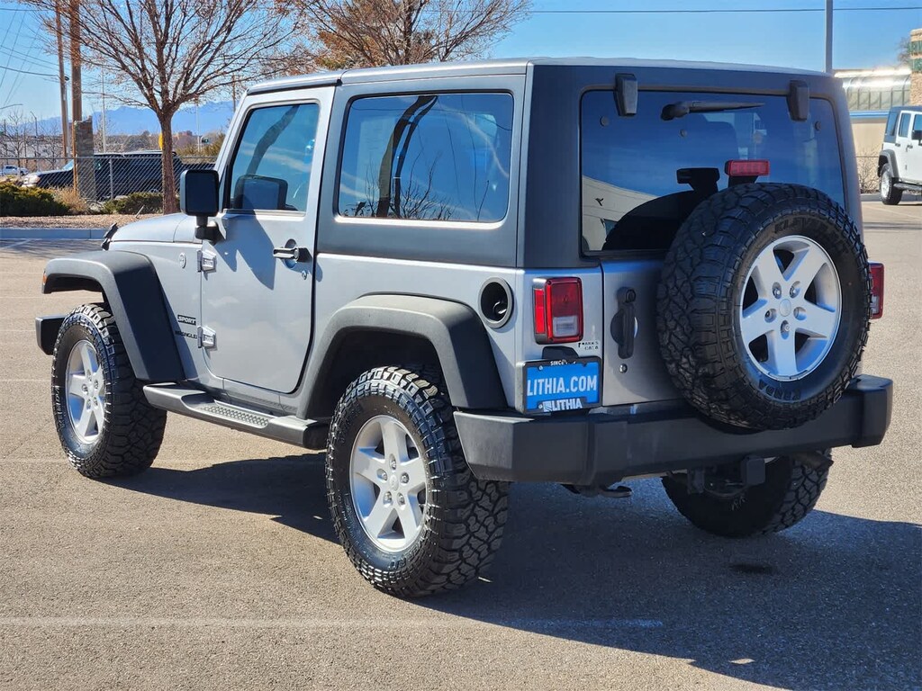 QUICK ORDER PACKAGE 24S Engine: 3.6L V6 24V VVT, Transmission: 5-Speed Automatic (W5A580), Air Conditioning, Tires: P255/75R17 OWL On/Off Road, Wheels: 17 x 7.5 Aluminum, Leather Wrapped Steering Wheel, Chrome/Leather Wrapped Shift Knob, POWER CONVENIENCE GROUP Auto Dim Mirror w/Reading Lamp, Front 1-Touch Down Power Windows, Power Heated Mirrors, Security Alarm, Power Locks, Remote Keyless Entry, TRANSMISSION: 5-SPEED AUTOMATIC (W5A580) Tip Start, Hill Descent Control, BLACK 3-PIECE HARD TOP Freedom Panel Storage Bag, Rear Window Defroster, Rear Window Wiper/Washer, Delete Sunrider Soft Top, CONNECTIVITY GROUP Vehicle Information Center, Remote USB Port, Uconnect Voice Command w/Bluetooth®, Tire Pressure Monitoring Display, DEEP TINT SUNSCREEN WINDOWS, SIRIUS SATELLITE RADIO, For More Info Call 888-539-7474, ENGINE: 3.6L V6 24V VVT (STD). Jeep Sport with Billet Silver Metallic Clearcoat exterior and Black interior features a V6 Cylinder Engine with 285 HP at 6400 RPM*.