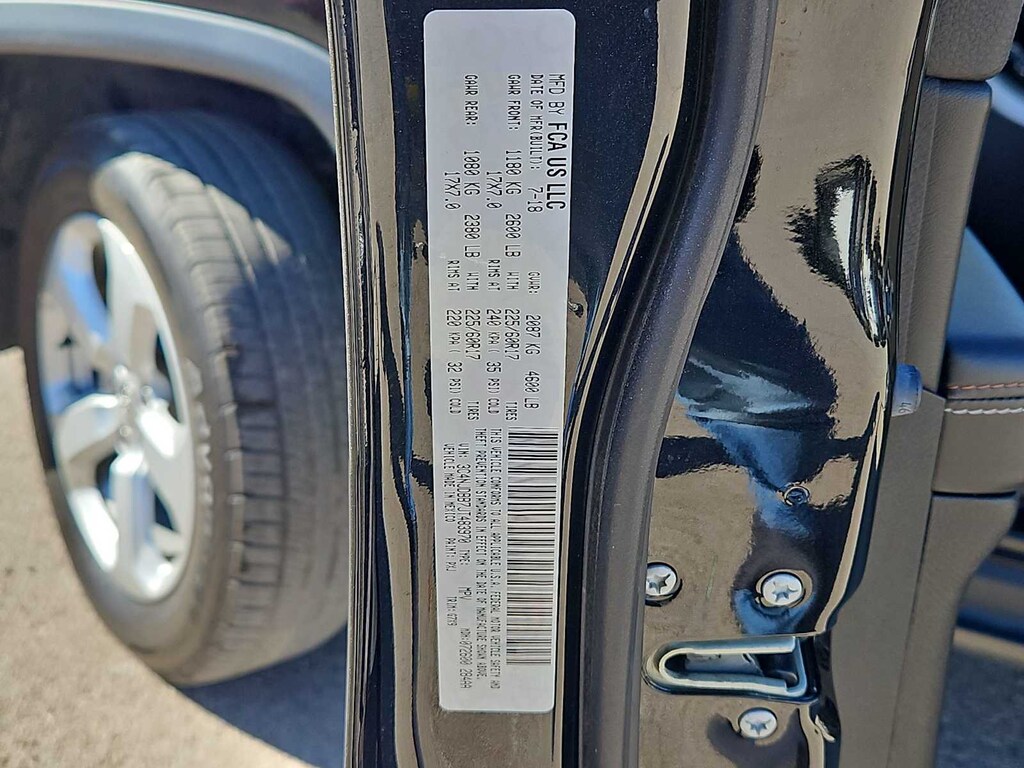 3.833 Axle Ratio, 4-Wheel Disc Brakes, 6 Speakers, ABS brakes, Air Conditioning, All-Season Floor Mats, Alloy wheels, AM/FM radio, Anti-whiplash front head restraints, Brake assist, Bumpers: body-color, Cold Weather Group, Compass, Delay-off headlights, Driver door bin, Driver vanity mirror, Dual front impact airbags, Dual front side impact airbags, Electronic Stability Control, Four wheel independent suspension, Front anti-roll bar, Front Bucket Seats, Front Center Armrest w/Storage, Front fog lights, Front reading lights, Fully automatic headlights, Heated door mirrors, Heated Front Seats, Heated Steering Wheel, Illuminated entry, Knee airbag, Low tire pressure warning, Manufacturers Statement of Origin, Occupant sensing airbag, Outside temperature display, Overhead airbag, Overhead console, Panic alarm, ParkView Rear Back-Up Camera, Passenger door bin, Passenger vanity mirror, Power door mirrors, Power steering, Power windows, Premium Cloth/Vinyl Bucket Seats, Quick Order Package 27J, Radio: Uconnect 3 w/5 Display, Rear anti-roll bar, Rear seat center armrest, Rear window defroster, Rear window wiper, Remote keyless entry, Reversible Carpet/Vinyl Cargo Mat, Roof rack: rails only, Speed control, Split folding rear seat, Spoiler, Steering wheel mounted audio controls, Tachometer, Telescoping steering wheel, Tilt steering wheel, Traction control, Trip computer, Variably intermittent wipers, Wheels: 17 x 7.0 Silver Painted Aluminum, Windshield Wiper De-Icer.