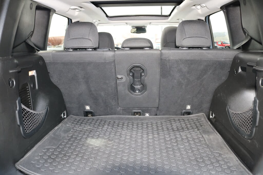 DUAL PANE PANORAMIC POWER SUNROOF, ENGINE: 2.4L I4 ZERO EVAP M-AIR 3.734 Final Drive Ratio, Engine Oil Cooler, Zero Evaporate Emissions Control System, QUICK ORDER PACKAGE 2EL ALTITUDE Engine: 2.4L I4 ZERO EVAP M-AIR, Transmission: 9-Speed 948TE Automatic, Altitude Package, Black Day Light Opening Moldings, Gloss Black Rear Fascia Applique, Exterior Mirrors w/Supplemental Signals, Gloss Black Instrument Panel Bezels, Vinyl Door Trim Panel, Black Accent Stitching, Gloss Black Badging, COLD WEATHER GROUP Windshield Wiper De-Icer, Heated Front Seats, PTC Auxiliary Interior Heater, Heated Steering Wheel, All-Season Floor Mats, POPULAR EQUIPMENT GROUP Power 8-Way Driver Manual 4-Way Passenger Seats, 115V Auxiliary Power Outlet, 40/20/40 Rear Seat w/Trunk Pass-Thru, Rear View Auto Dim Mirror, Power 4-Way Driver Lumbar Adjust, PASSIVE ENTRY REMOTE START PACKAGE Passive Entry/Keyless GO®, Remote Start System, TRANSMISSION: 9-SPEED 948TE AUTOMATIC Vinyl Shift Knob. Jeep Altitude with Anvil exterior and Black interior features a 4 Cylinder Engine with 180 HP at 6400 RPM*. Serviced here, Non-Smoker vehicle, Originally bought here