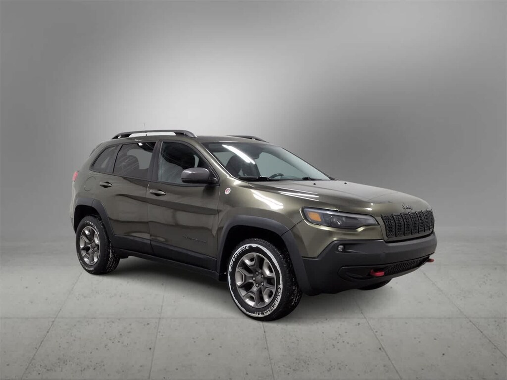 Olive Green Pearlcoat 2019 Jeep Cherokee Trailhawk 4WD 9-Speed 948TE Automatic 3.2L V6 **HEATED SEATS**, **HEATED STEERING WHEEL**, **POWER LIFTGATE**, **BLINDSPOT MONITORING**, **HEATED MIRRORS**, **LEATHER**, **KEYLESS ENTRY**, **POWER SEAT**, **LED HEADLIGHTS**, **BLUETOOTH**, **GREAT FUEL ECONOMY**, **TONS OF CARGO ROOM**, **LOCAL TRADE**, **NAVIGATION/GPS/NAV**, **REMOTE START**, **REAR BACK UP CAMERA**, **APPLE/ANDROID CAR PLAY**, Hassle-Free Pricing, Cold Weather Group, Engine Block Heater, Heated Front Seats, Heated Steering Wheel, Windshield Wiper De-Icer.