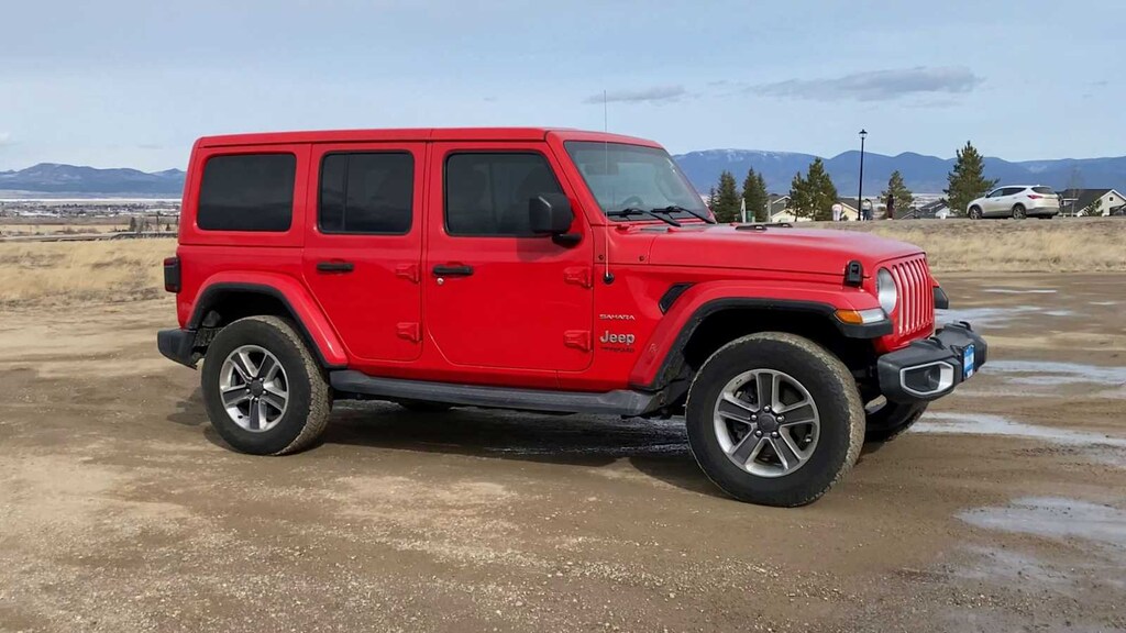 Lithia Chrysler Dodge Jeep RAM FIAT of Helena is pleased to offer this Firecracker Red Clearcoat 2019 Jeep Wrangler Unlimited Sahara for purchase, this vehicle is well equipped with many features including: 8.4 Radio & Premium Audio Group (1-Year SiriusXM Guardian Trial, 4G LTE Wi-Fi Hot Spot, 5-Year SiriusXM Traffic Service, 5-Year SiriusXM Travel Link Service, 8.4 Touchscreen Display, Auto-Dimming Rear-View Mirror, Emergency/Assistance Call, For Details, Visit DriveUconnect.ca, GPS Navigation, HD Radio, Radio: Uconnect 4C Nav w/8.4 Display, SiriusXM Traffic Plus, and SiriusXM Travel Link), Cold Weather Group (Heated Front Seats and Heated Steering Wheel), LED Lighting Group (Daytime Running Lamps LED Accents, Front LED Fog Lamps, LED Reflector Headlamps, and LED Taillamps), Quick Order Package 28G, Alpine Premium Audio System, Apple CarPlay/Android Auto, 3.45 Rear Axle Ratio, 4-Wheel Disc Brakes, 8 Speakers, ABS brakes, Air Conditioning, Alloy wheels, AM/FM radio: SiriusXM, Anti-Spin Differential Rear Axle, Automatic temperature control, Body Color 3-Piece Hard Top, Brake assist, Cloth Low-Back Bucket Seats, Compass, Delay-off headlights, Driver door bin, Driver vanity mirror, Dual front impact airbags, Dual front side impact airbags, Electronic Stability Control, Freedom Panel Storage Bag, Front anti-roll bar, Front Bucket Seats, Front Center Armrest w/Storage, Front dual zone A/C, Front fog lights, Front reading lights, Fully automatic headlights, Garage door transmitter, Heated door mirrors, Heavy Duty Suspension w/Gas Shocks, Illuminated entry, Integrated roll-over protection, Leather steering wheel, Low tire pressure warning, Manufacturers Statement of Origin (DISC), No Soft Top, Non-Lock Fuel Cap w/o Discriminator, Occupant sensing airbag, Outside temperature display, Panic alarm, ParkView Rear Back-Up Camera, Passenger door bin, Passenger vanity mirror, Power door mirrors, Power steering, Power windows, Radio data system, Radio: Uconnect 4 w/7 Display, Rear anti-roll bar, Rear reading lights, Rear Window Defroster, Rear Window Wiper/Washer, Remote keyless entry, Remote Start System, Security system, Speed control, Split folding rear seat, Steering wheel mounted audio controls, Tachometer, Telescoping steering wheel, Tilt steering wheel, Traction control, Trip computer, Variably intermittent wipers, Voltmeter, and Wheels: 18 x 7.5 Polished w/Gray SpokeS. New Price! Clean CARFAX. Firecracker Red Clearcoat 2019 Jeep Wrangler Unlimited Sahara Unlimited Sahara 4WD 8-Speed Automatic 2.0L I4 DOHC