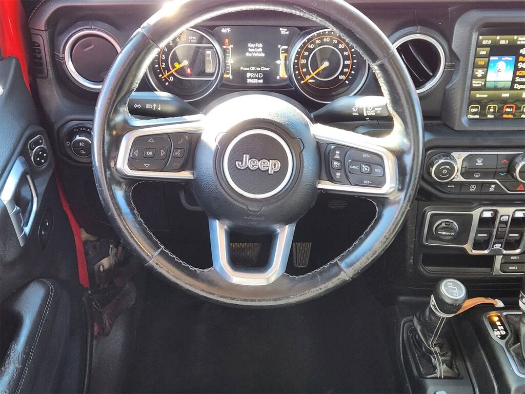 BODY COLOR 3-PIECE HARD TOP Freedom Panel Storage Bag, Rear Window Defroster, Rear Sliding Window, No Soft Top, TRANSMISSION: 8-SPEED AUTOMATIC (850RE) Tip Start, Transmission Skid Plate, Selec-Speed Control, 8.4 RADIO & PREMIUM AUDIO GROUP Emergency/Assistance Call, SiriusXM Traffic Plus, Alpine Premium Audio System, HD Radio, Radio: Uconnect 4C Nav w/8.4 Display, Rear View Auto Dim Mirror, For Details, Visit DriveUconnect.com, 1-Year SiriusXM Guardian Trial, SiriusXM Travel Link, BLACK, LEATHER TRIMMED BUCKET SEATS Premium Wrapped I/P Bezel, Leather Wrapped Shift Knob, Full Length Floor Console Premium Armrest, Leather Wrapped Park Brake Handle, Rear Armrest w/Cupholder Seat, LED LIGHTING GROUP Daytime Running Lamps LED Accents, LED Park Turn Lamps, Front LED Fog Lamps, LED Reflector Headlamps, LED Taillamps, SAFETY GROUP ParkSense Rear Park Assist System, Blind Spot & Cross Path Detection, ADVANCED SAFETY GROUP Advanced Brake Assist, Full Speed Forward Collision Warning Plus, ANTI-SPIN DIFFERENTIAL REAR AXLE, REMOTE START SYSTEM, TRAILER TOW PACKAGE Trailer Hitch Zoom, Class IV Hitch Receiver, Heavy Duty Engine Cooling, 240 Amp Alternator, ENGINE: 3.6L V6 24V VVT UPG I W/ESS (STD). Jeep Overland with Firecracker Red Clearcoat exterior and Black interior features a V6 Cylinder Engine with 285 HP at 6400 RPM*.
