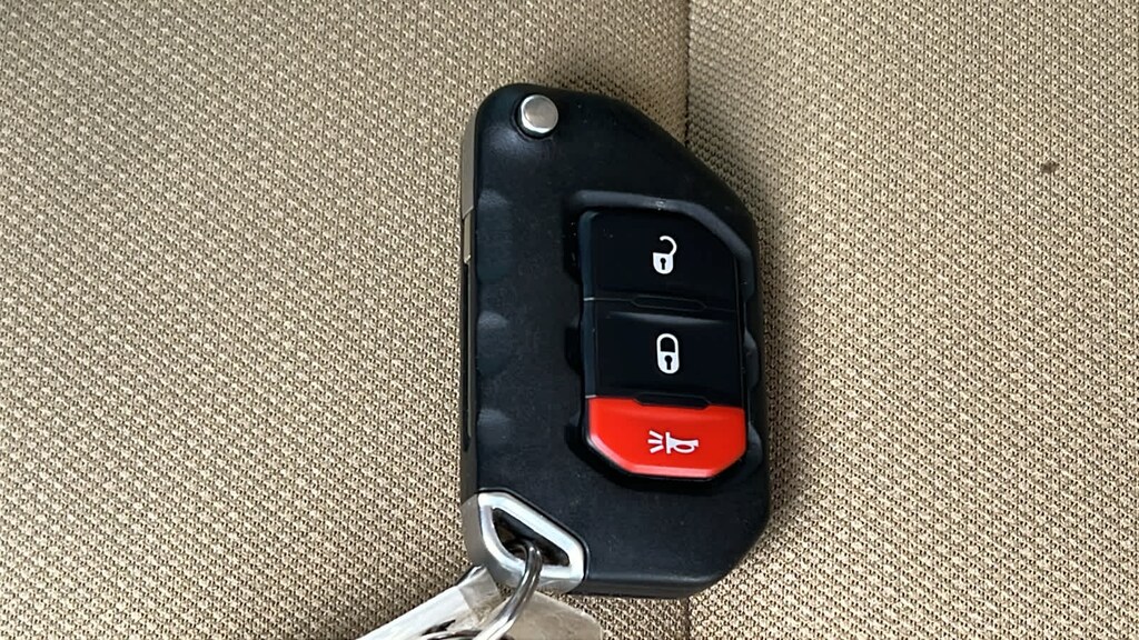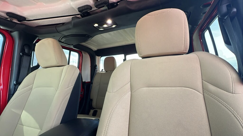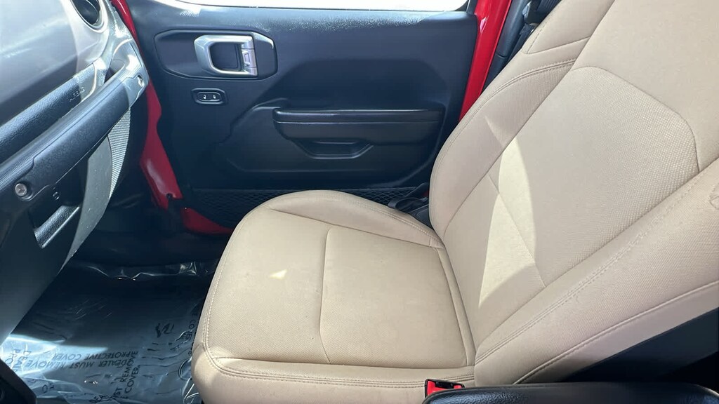 QUICK ORDER PACKAGE 24S Engine: 3.6L V6 24V VVT UPG I w/ESS, Transmission: 8-Speed Automatic (850RE), Speed Sensitive Power Locks, Automatic Headlamps, Leather Wrapped Steering Wheel, Front 1-Touch Down Power Windows, Power Heated Mirrors, Security Alarm, Power Tailgate Lock, Remote Keyless Entry, Sun Visors w/Illuminated Vanity Mirrors, TRANSMISSION: 8-SPEED AUTOMATIC (850RE) Tip Start, Transmission Skid Plate, Selec-Speed Control, BLACK 3-PIECE HARD TOP Freedom Panel Storage Bag, Rear Window Defroster, Rear Sliding Window, No Soft Top, MAX TOW PACKAGE W/4.10 AXLE RATIO Dana M210 Wide Front Axle, GVWR: 6,250 lbs w/Max Tow Package, Anti-Spin Differential Rear Axle, Tires: 245/75R17 BSW Automatic Transmission Dueler, Molded-In-Color Fender Flares (2-Piece), Daytime Running Lamp System, Dana M220 Wide Rear Axle, 4.10 Rear Axle Ratio, TECHNOLOGY GROUP Google Android Auto®, SiriusXM Satellite Radio, For More Info, Call 800-643-2112, GPS Antenna Input, USB Host Flip, Cluster 7.0 TFT Color Display, Integrated Center Stack Radio, 7.0 Touch Screen Display, Air Conditioning w/Auto Temp Control, Radio: Uconnect 4 w/7 Display, Apple CarPlay®, CONVENIENCE GROUP Universal Garage Door Opener, ENGINE: 3.6L V6 24V VVT UPG I W/ESS (STD). Jeep Sport S with Firecracker Red Clearcoat exterior and Heritage Tan/Black interior features a V6 Cylinder Engine with 285 HP at 6400 RPM*.