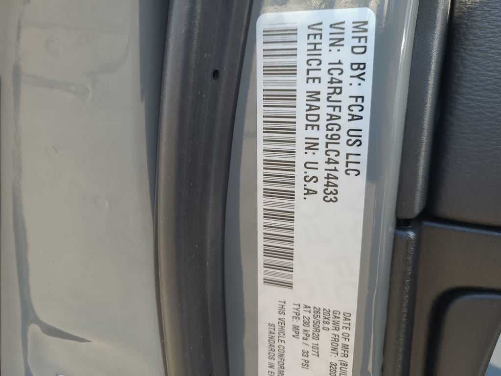 QUICK ORDER PACKAGE 2BZ ALTITUDE Engine: 3.6L V6 24V VVT UPG I w/ESS, Transmission: 8-Speed Automatic (850RE), Rear View Auto Dim Mirror, Rear Fascia Black MIC Step Pad, SiriusXM Traffic Plus, Instrument Cluster w/Off-Road Disp, Pages, SiriusXM Satellite Radio, Disassociated Touchscreen Display, HD Radio, For Details Visit DriveUconnect.com, 1-Year SiriusXM Guardian Trial, GPS Navigation, SiriusXM Travel Link, 4G LTE Wi-Fi Hot Spot, 8.4 Touchscreen Display, Body Color Shark Fin Antenna, Power 8-Way Driver/Manual Passenger Seat, Power 4-Way Driver Lumbar Adjust, Security & Convenience Group, Remote Start System, 115V Auxiliary Power Outlet, Universal Garage Door Opener, Heated Front Seats, Heated Steering Wheel, Power, POWER SUNROOF, PREMIUM ALPINE SPEAKER SYSTEM Active Noise Control System, 506 Watt Amplifier, TRANSMISSION: 8-SPEED AUTOMATIC (850RE) (STD), ENGINE: 3.6L V6 24V VVT UPG I W/ESS (STD).