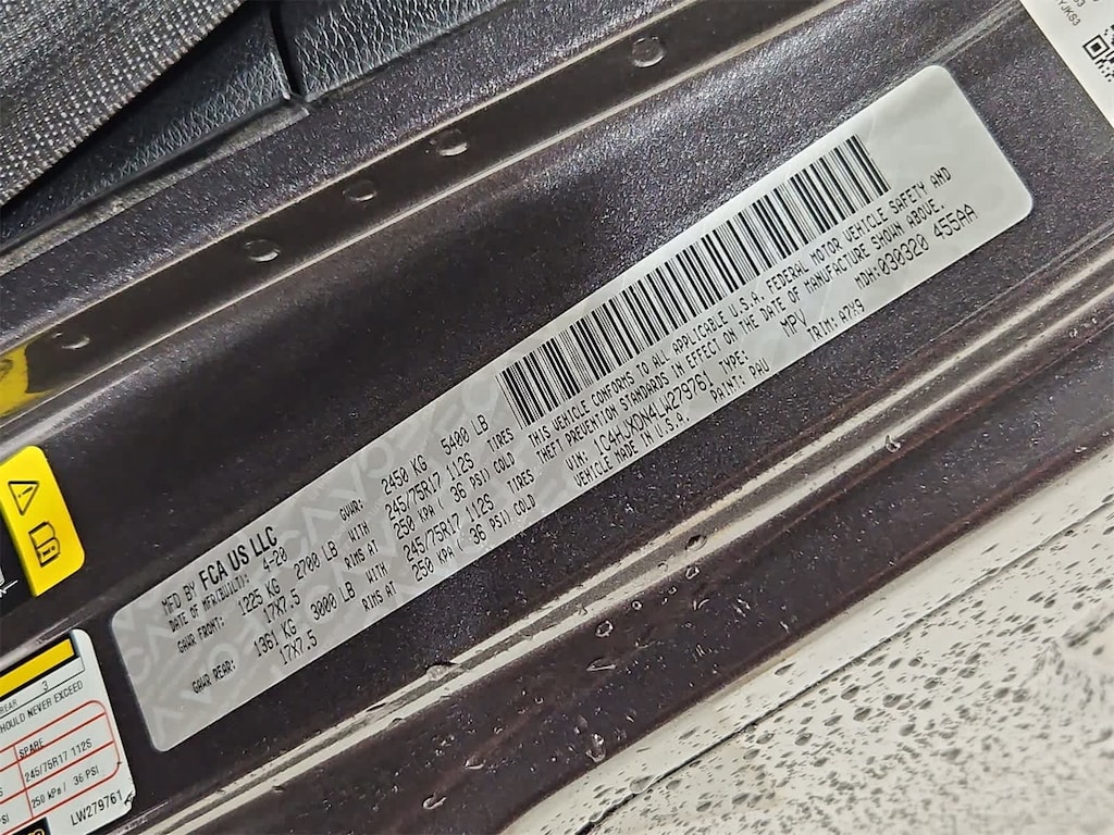 3.45 Rear Axle Ratio, 4-Wheel Disc Brakes, 8 Speakers, ABS brakes, Air Conditioning, AM/FM radio, Automatic Headlamps, Aux Battery, Black 3-Piece Hard Top, Brake assist, Cloth Low-Back Bucket Seats, Compass, Deep Tint Sunscreen Windows, Delay-off headlights, Driver door bin, Driver vanity mirror, Dual front impact airbags, Dual front side impact airbags, Electronic Stability Control, Freedom Panel Storage Bag, Front 1-Touch Down Power Windows, Front anti-roll bar, Front Bucket Seats, Front Center Armrest w/Storage, Front fog lights, Front reading lights, Integrated roll-over protection, Integrated Voice Command w/Bluetooth, Leather Wrapped Steering Wheel, Low tire pressure warning, Manufacturers Statement of Origin, No Soft Top, Non-Lock Fuel Cap w/o Discriminator, Normal Duty Suspension, Occupant sensing airbag, Outside temperature display, ParkView Rear Back-Up Camera, Passenger door bin, Passenger vanity mirror, Power Heated Mirrors, Power steering, Quick Order Package 22S Sport S, Radio data system, Radio: Uconnect 3 w/5 Display, Rear anti-roll bar, Rear reading lights, Rear Window Defroster, Rear Window Wiper/Washer, Remote Keyless Entry, Security Alarm, Speed control, Speed Sensitive Power Locks, Split folding rear seat, Steering wheel mounted audio controls, Stop-Start Dual Battery System, Sun Visors w/Illuminated Vanity Mirrors, Tachometer, Telescoping steering wheel, Tilt steering wheel, Traction control, Trip computer, Variably intermittent wipers, Wheels: 17 x 7.5 Black Steel Styled, Wheels: 17 x 7.5 Tech Silver Aluminum. Some of our Pre-Owned vehicles may be subject to unrepaired safety recalls. Check for a vehicle??s unrepaired recalls by VIN at http://vinrcl.safercar.gov/vin/
