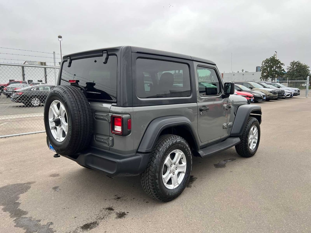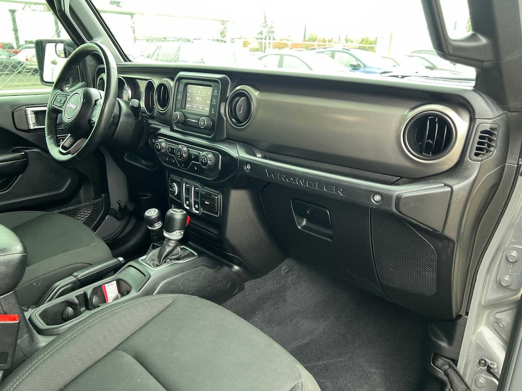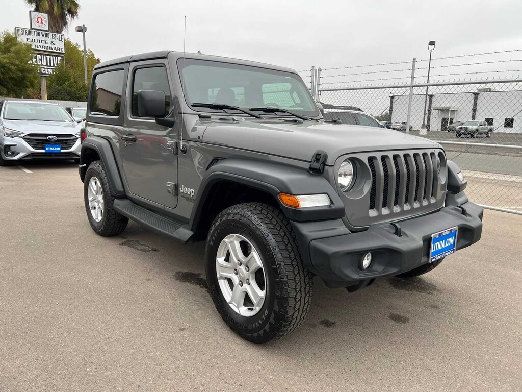 Sting-Gray Clearcoat 2020 Jeep Wrangler Sport S 4WD 8-Speed Automatic 2.0L I4 DOHC FRESH ENGINE and CABIN FILTERS, FRESH OIL CHANGE, 138 point Lithia inspected, DETAILED INTERIOR AND EXTERIOR FOR DELIVERY, CERTIFIED BY CARFAX - NO ACCIDENTS, Multi Point Safety and Mechanical Inspection Performed by Certified Technician, 110 mph Vehicle Max Speed Calibration, 4-Wheel Disc Brakes, 8 Speakers, ABS brakes, Air Conditioning, AM/FM radio, Automatic Headlamps, Aux Battery, Black 3-Piece Hard Top, Brake assist, Cold Weather Group, Compass, Convenience Group, Deep Tint Sunscreen Windows, Electronic Stability Control, Freedom Panel Storage Bag, Front 1-Touch Down Power Windows, Front anti-roll bar, Heated Front Seats, Heated Steering Wheel, Integrated roll-over protection, Leather Wrapped Steering Wheel, No Soft Top, Non-Lock Fuel Cap w/o Discriminator, Normal Duty Suspension, Outside temperature display, ParkView Rear Back-Up Camera, Power Heated Mirrors, Power steering, Quick Order Package 22S Sport S, R1234YF A/C Refrigerant, Radio data system, Radio: Uconnect 3 w/5 Display, Rear anti-roll bar, Rear Window Defroster, Rear Window Wiper/Washer, Remote Keyless Entry, Security Alarm, Speed control, Speed Sensitive Power Locks, Steering wheel mounted audio controls, Stop-Start Dual Battery System, Sun Visors w/Illuminated Vanity Mirrors, Telescoping steering wheel, Tilt steering wheel, Traction control, Universal Garage Door Opener, Wheels: 17 x 7.5 Tech Silver Aluminum.