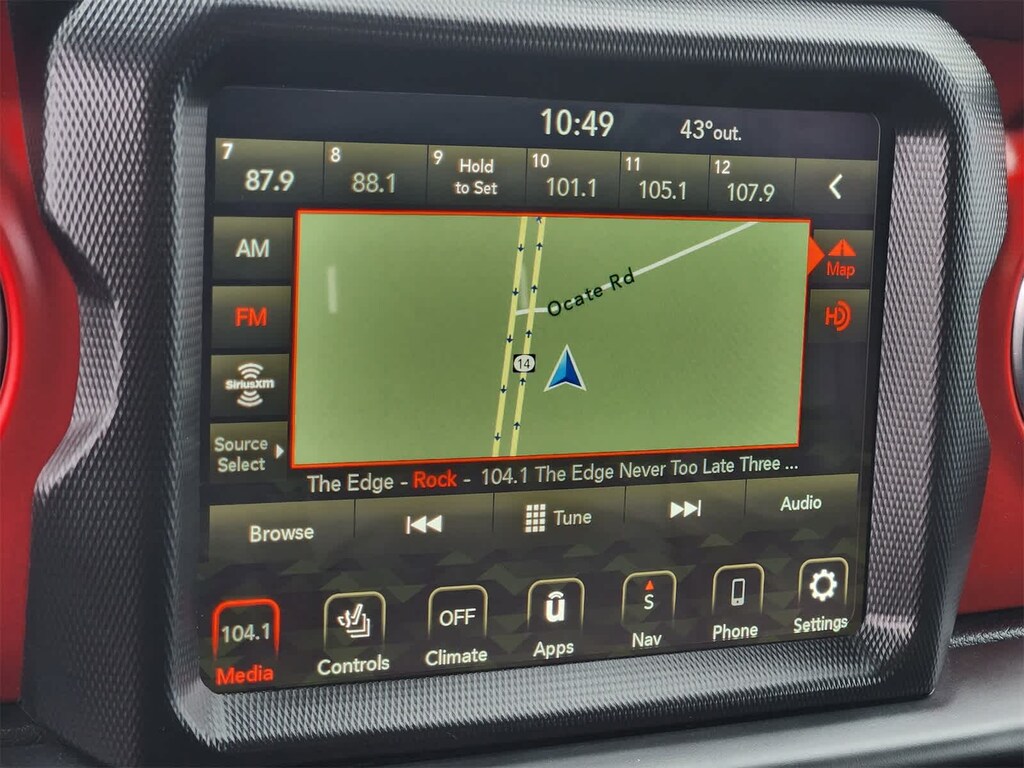 DUAL TOP GROUP Premium Black Sunrider Soft Top w/Dual Top Group, Black 3-Piece Hard Top, Freedom Panel Storage Bag, Rear Window Defroster, Rear Window Wiper/Washer, No Soft Top, 8.4 RADIO & PREMIUM AUDIO GROUP SiriusXM Traffic Plus, Alpine Premium Audio System, HD Radio, Radio: Uconnect 4C Nav w/8.4 Display, For Details, Visit DriveUconnect.com, Rear View Auto Dim Mirror, 1-Year SiriusXM Guardian Trial, GPS Navigation, SiriusXM Travel Link, 4G LTE Wi-Fi Hot Spot, Emergency/Assistance Call, 8.4 Touchscreen Display, TRANSMISSION: 8-SPEED AUTOMATIC (850RE) TIP Start, Hill Descent Control, LED LIGHTING GROUP Daytime Running Lamps LED Accents, Front LED Fog Lamps, LED Reflector Headlamps, LED Taillamps, COLD WEATHER GROUP Heated Steering Wheel, Heated Front Seats, WHEELS: 17 X 7.5 BLACK W/MACHINED LIP, SAFETY GROUP ParkSense Rear Park Assist System, Blind Spot & Cross Path Detection, LED Taillamps, TRAILER TOW & HD ELECTRICAL GROUP Class II Receiver Hitch, 700 Amp Maintenance Free Battery, 7 & 4 Pin Wiring Harness, 240 Amp Alternator, Auxiliary Switches, ADVANCED SAFETY GROUP Advanced Brake Assist, Full Speed Forward Collision Warning Plus, REMOTE PROXIMITY KEYLESS ENTRY, ENGINE: 2.0L I4 DOHC DI TURBO W/ESS.