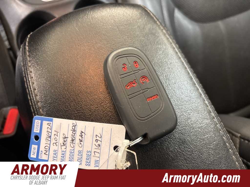 CARFAX One-Owner. Clean CARFAX. Olive Green Pearlcoat 2021 Jeep Cherokee Latitude Lux 4WD 9-Speed 948TE Automatic 3.2L V6 ABS brakes, Apple CarPlay/Android Auto, Brake assist, Dual front impact airbags, Dual front side impact airbags, Electronic Stability Control, Front anti-roll bar, Heated front seats, Heated steering wheel, Knee airbag, Occupant sensing airbag, Overhead airbag, ParkView Rear Back-Up Camera, Power driver seat, Power Front/Fixed Rear Full Sunroof, Power Liftgate, Rear anti-roll bar, Traction control.