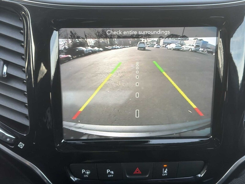 Cherokee Limited is nicely equipped with Quick Order Package 26G, Cherokee Limited, 4D Sport Utility, 3.2L V6, 4WD, Diamond Black Crystal Pearlcoat, Black Leather, 10 Speakers, 3.251 Axle Ratio, 4-Wheel Disc Brakes, ABS brakes, Air Conditioning, Alloy wheels, AM/FM radio: SiriusXM, Anti-whiplash front head restraints, Apple CarPlay/Android Auto, Audio memory, Auto High-beam Headlights, Auto-dimming Rear-View mirror, Automatic temperature control, AutoStick Automatic Transmission, Auxiliary Transmission Oil Cooler, Brake assist, Bumpers: body-color, Compass, Delay-off headlights, Driver door bin, Driver vanity mirror, Dual Bright Exhaust Tips, Dual front impact airbags, Dual front side impact airbags, Electronic Stability Control, Engine Oil Cooler, Four wheel independent suspension, Front anti-roll bar, Front Bucket Seats, Front Center Armrest, Front dual zone A/C, Front fog lights, Front License Plate Bracket, Front reading lights, Fully automatic headlights, Garage door transmitter, Heated door mirrors, Heated front seats, Heated steering wheel, Illuminated entry, Knee airbag, Leather Shift Knob, Liquid Titanium Door Trim Appliques, Low tire pressure warning, Memory seat, Normal Duty Suspension, Occupant sensing airbag, Outside temperature display, Overhead airbag, Overhead console, Panic alarm, ParkView Rear Back-Up Camera, Passenger door bin, Passenger vanity mirror, Piano Black Interior Accents, Power door mirrors, Power driver seat, Power Liftgate, Power moonroof, Power passenger seat, Power steering, Power windows, Premium Leather Trimmed Bucket Seats, Radio data system, Radio: Uconnect 4 w/8.4 Display, Rain sensing wipers, Rear anti-roll bar, Rear reading lights, Rear seat center armrest, Rear side impact airbag, Rear window defroster, Rear window wiper, Remote keyless entry, Security system, Speed control, Speed-sensing steering, Split folding rear seat, Spoiler, Steering wheel mounted audio controls, Stop-Start Multiple VSM System, Tachometer, Telescoping steering wheel, Tilt steering wheel, Traction control, Trip computer, Turn signal indicator mirrors, Variably intermittent wipers, Voltmeter, and Wheels: 18 x 7.0 Painted Diamond Cut Aluminum.