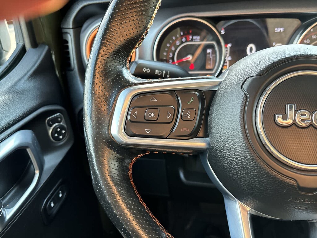 BODY COLOR 3-PIECE HARD TOP Freedom Panel Storage Bag, Rear Window Defroster, Rear Sliding Window, No Soft Top, TRANSMISSION: 8-SPEED AUTOMATIC (850RE) Tip Start, Transmission Skid Plate, Selec-Speed Control, 8.4 RADIO & PREMIUM AUDIO GROUP SiriusXM Traffic Plus, Alpine Premium Audio System, HD Radio, Radio: Uconnect 4C Nav w/8.4 Display, Rear View Auto Dim Mirror, For Details, Visit DriveUconnect.com, 1-Year SiriusXM Guardian Trial, GPS Navigation, SiriusXM Travel Link, Emergency/Assistance Call, 8.4 Touchscreen Display, MOPAR BLACK STITCHED LEATHER UPGRADE, LED LIGHTING GROUP Daytime Running Lamps LED Accents, LED Park Turn Lamps, Front LED Fog Lamps, LED Premium Reflector Headlamps, LED Taillamps, COLD WEATHER GROUP Heated Steering Wheel, Heated Front Seats, SAFETY GROUP ParkSense Rear Park Assist System, Blind Spot & Cross Path Detection, REMOTE PROXIMITY KEYLESS ENTRY, TRAILER TOW PACKAGE Trailer Hitch Zoom, Class IV Hitch Receiver, Heavy Duty Engine Cooling, 240 Amp Alternator, MOPAR SPRAY IN BEDLINER, ENGINE: 3.6L V6 24V VVT UPG I W/ESS (STD).