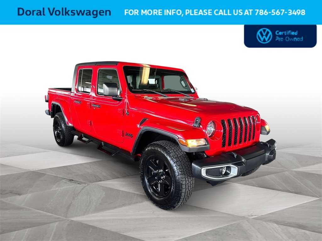 ALL INVENTORY IS ON MIAMI NOT TAMPA. BUY WITH CONFIDENCE! WE LOVE TRADES! HASSLE FREE FINANCE PLANS FOR EVERYONE! PLEASE CALL TO ENSURE AVAILABILITY AS OUR INVENTORY CHANGES BY THE HOUR. AFFORDABLE FINANCE PLANS! EASY FINANCE OPTIONS! ALL INVENTORY IS READY FOR INSTANT DELIVERY! Odometer is 17805 miles below market average! NO ACCIDENTS OR ISSUES, COMPLETE 182 POINT MANUFACTURERS INSPECTION, FULL SERVICE PERFORMED, LOW MILES, NAVIGATION SYSTEM, BACK UP CAMERA, LOW PRICE AND A GREAT VALUE, LOOKS AND FEELS LIKE A NEW CAR. Priced below KBB Fair Purchase Price! Firecracker Red Clearcoat 2021 Jeep Gladiator Sport 3.6L V6 24V VVT