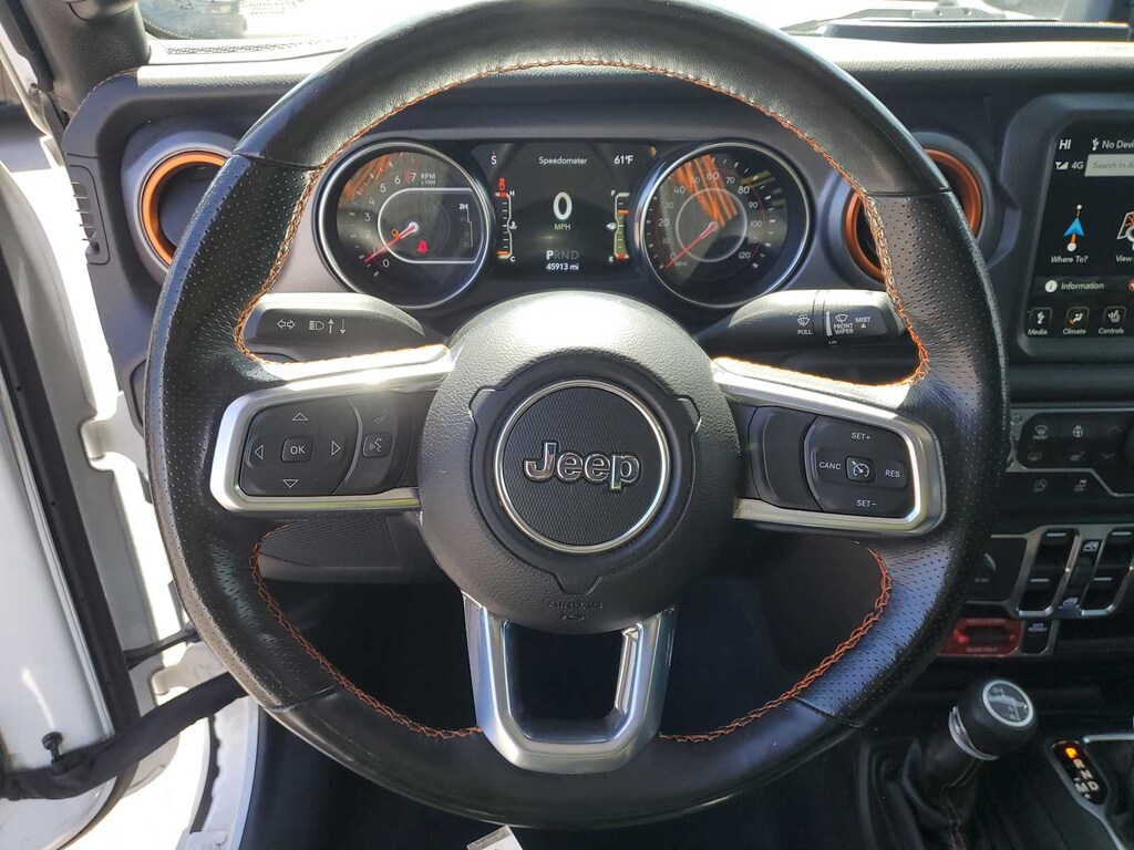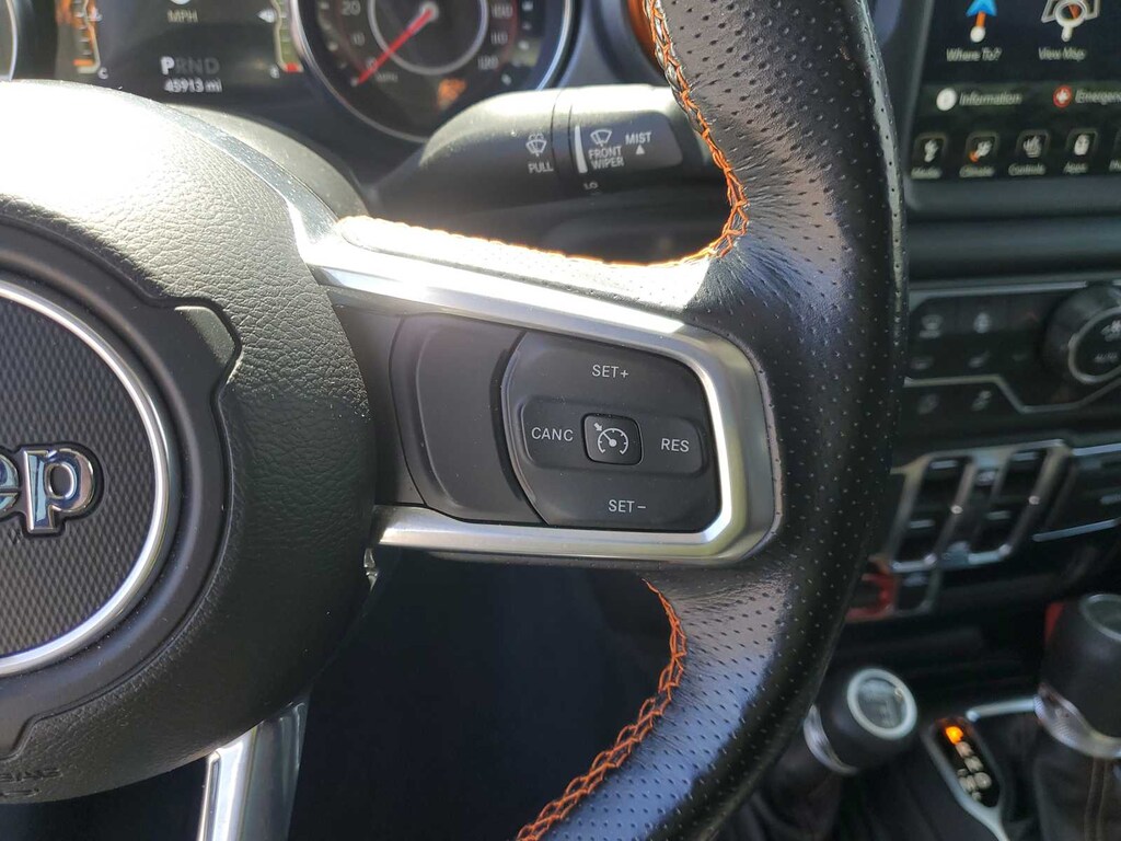 1-Year SiriusXM Guardian Trial, 240 Amp Alternator, 4-Wheel Disc Brakes, 4.10 Rear Axle Ratio, 5-Year SiriusXM Traffic Service, 5-Year SiriusXM Travel Link Service, 8 Speakers, 8.4 Radio & Premium Audio Group, 8.4 Touchscreen Display, 97 mph Maximum Speed Calibration, ABS brakes, Air Conditioning, Alloy wheels, Alpine Premium Audio System, AM/FM radio: SiriusXM, Apple CarPlay/Android Auto, Auto-Dimming Rear-View Mirror, Automatic temperature control, Blind Spot & Cross Path Detection, Body Color 3-Piece Hard Top, Body Color Fender Flares (2-Piece), Brake assist, Class IV Hitch Receiver, Cold Weather Group, Compass, Delay-off headlights, Driver door bin, Driver vanity mirror, Dual front impact airbags, Dual front side impact airbags, Electronic Stability Control, Emergency/Assistance Call, For Details, Visit DriveUconnect.com, Freedom Panel Storage Bag, Front anti-roll bar, Front Bucket Seats, Front Center Armrest w/Storage, Front dual zone A/C, Front fog lights, Front License Plate Bracket, Front reading lights, Fully automatic headlights, Garage door transmitter, GPS Navigation, HD Radio, Heated door mirrors, Heated Front Seats, Heated Steering Wheel, Heavy Duty Suspension w/Gas Shocks, Heavy-Duty Engine Cooling, Illuminated entry, Integrated roll-over protection, Leather steering wheel, Low tire pressure warning, MOPAR Spray In Bedliner, No Soft Top, Occupant sensing airbag, Outside temperature display, Panic alarm, ParkSense Rear Park Assist System, ParkView Rear Back-Up Camera, Passenger door bin, Passenger vanity mirror, Power door mirrors, Power steering, Power windows, Premium Cloth Seats w/Sport Bolsters, Quick Order Package 24D, Radio data system, Radio: Uconnect 4 w/7 Display, Radio: Uconnect 4C Nav w/8.4 Display, Rear anti-roll bar, Rear reading lights, Rear Sliding Window, Rear Window Defroster, Remote keyless entry, Remote Proximity Keyless Entry, Remote Start System, Safety Group, Security system, SiriusXM Traffic Plus, SiriusXM Travel Link, Speed control, Split folding rear seat, Steering wheel mounted audio controls, Tachometer, Telescoping steering wheel, Tilt steering wheel, Traction control, Trailer Hitch Zoom, Trailer Tow Package, Trip computer, Variably intermittent wipers, Voltmeter, Wheels: 17 x 7.5 Low Gloss Black Aluminum, Wheels: 17 x 7.5 Low Gloss Black Polished.