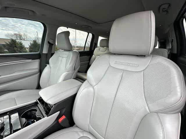 Baierl Toyota is excited to offer this attractive-looking 2021 Jeep Grand Cherokee L in Bright White Clearcoat. This nicely equipped 2021 Jeep Grand Cherokee L comes with the following features; 10 Speakers, 10.1 Touchscreen Display, 19 Speakers High Performance Audio, 2nd Row Manual Window Shades, 3.45 Rear Axle Ratio, 3rd row seats: split-bench, 4-Wheel Disc Brakes, 950 Watt Amplifier, ABS brakes, Adaptive suspension, Air Conditioning, Air Susp/Activ Damping Delete Credit, Alloy wheels, AM/FM radio: SiriusXM w/360L, Anti-whiplash front head restraints, Apple CarPlay, Apple CarPlay/Android Auto, ATC w/4 Zone Temp Control, Audio memory, Auto High-beam Headlights, Auto-dimming door mirrors, Auto-dimming Rear-View mirror, Auto-leveling suspension, Automatic temperature control, Aux Battery, Brake assist, Bumpers: body-color, Compass, Connected Travel & Traffic Services, Connectivity - US/Canada, Delay-off headlights, Disassociated Touchscreen Display, Driver door bin, Driver Power Seat Back Massage, Driver vanity mirror, Dual front impact airbags, Dual front side impact airbags, Electronic Stability Control, Emergency communication system, Four wheel independent suspension, Front anti-roll bar, Front Bucket Seats, Front Center Armrest w/Storage, Front dual zone A/C, Front fog lights, Front License Plate Bracket (DISC), Front Passenger Power Seat Back Massage, Front reading lights, Fully automatic headlights, Garage door transmitter, Google Android Auto, GPS Antenna Input, GPS Navigation, HD Radio, Heated door mirrors, Heated front seats, Heated rear seats, Heated steering wheel, Illuminated entry, Integrated Center Stack Radio, Integrated Voice Command w/Bluetooth, Knee airbag, Leather steering wheel, Low tire pressure warning, Luxury Tech Group IV, Memory seat, Nappa Leather Seats, Nappa Leather Seats (TL), Navigation System, Normal Duty Suspension, Occupant sensing airbag, Outside temperature display, Overhead airbag, Overhead console, Panic alarm, ParkView Rear Back-Up Camera, Passenger door bin, Passenger Seat Memory, Passenger vanity mirror, Power Adjust 12-Way Driver Seat, Power Adjust 12-Way Front Passenger Seat, Power door mirrors, Power driver seat, Power Fold Seatbacks, Power Liftgate, Power moonroof: CommandView, Power passenger seat, Power steering, Power windows, Quick Order Package 22N, Radio data system, Radio: Uconnect 5 Nav w/10.1 Display, Radio: Uconnect 5 Nav w/8.4 Display, Rain sensing wipers, Rear air conditioning, Rear anti-roll bar, Rear reading lights, Rear window defroster, Rear window wiper, Rearview Autodim Digital Display Mirror, Reclining 3rd row seat, Remote keyless entry, Roof rack: rails only, Security system, SiriusXM Satellite Radio, SiriusXM w/360L, Speed control, Speed-Sensitive Wipers, Split folding rear seat, Spoiler, Steering wheel memory, Steering wheel mounted audio controls, Tachometer, Telescoping steering wheel, Tilt steering wheel, Traction control, Trip computer, Turn signal indicator mirrors, USB Host Flip, Variably intermittent wipers, Ventilated front seats, Voltmeter, Wheels: 20 x 8.5 Machined Face Aluminum, Wireless Charging Pad.