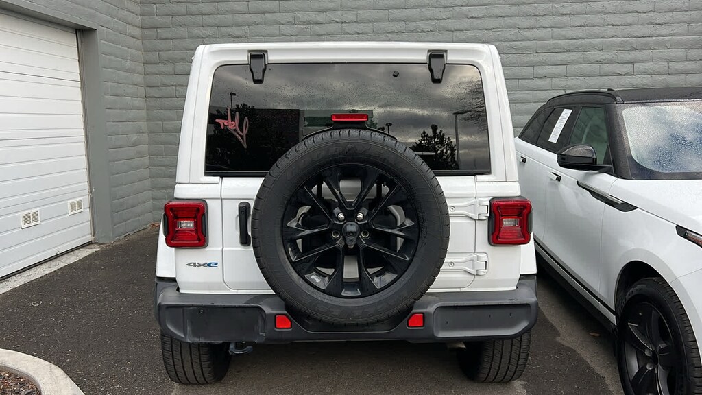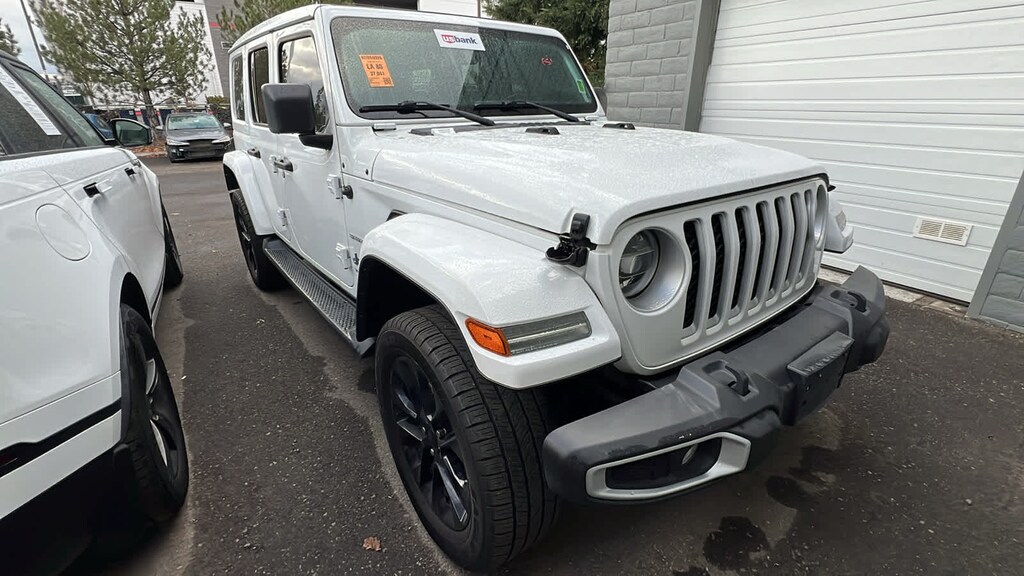 SKY 1-TOUCH POWER TOP Rear Window Defroster, Rear Window Wiper/Washer, Removable Rear Quarter Windows, Power Top Quarter Window Storage Bag, COLD WEATHER GROUP Heated Steering Wheel, Remote Start System, Heated Front Seats, REMOTE PROXIMITY KEYLESS ENTRY, TRANSMISSION: 8-SPEED AUTO 8P75PH PHEV (STD), ENGINE: 2.0L I4 DOHC DI TURBO PHEV (STD). Jeep Unlimited Sahara with Bright White Clearcoat exterior and Dark Saddle/Black interior features a 4 Cylinder Engine with 375 HP at 5250 RPM*.