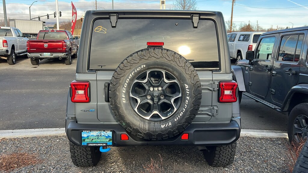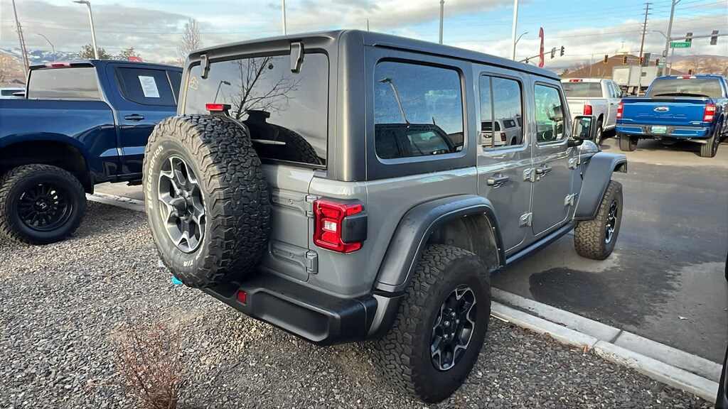 BLACK, LEATHER TRIMMED BUCKET SEATS Premium Wrapped I/P Bezels, Leather Wrapped Park Brake Handle, Leather Wrapped Shift Knob, Premium Door Trim Panel, BLACK 3-PIECE HARD TOP Freedom Panel Storage Bag, Rear Window Defroster, Rear Window Wiper/Washer, No Soft Top, REMOTE PROXIMITY KEYLESS ENTRY, TRANSMISSION: 8-SPEED AUTO 8P75PH PHEV (STD), ENGINE: 2.0L I4 DOHC DI TURBO PHEV (STD). Jeep Unlimited Rubicon with Sting-Gray Clearcoat exterior and Black interior features a 4 Cylinder Engine with 375 HP at 5250 RPM*.