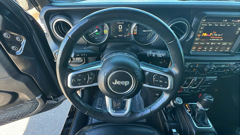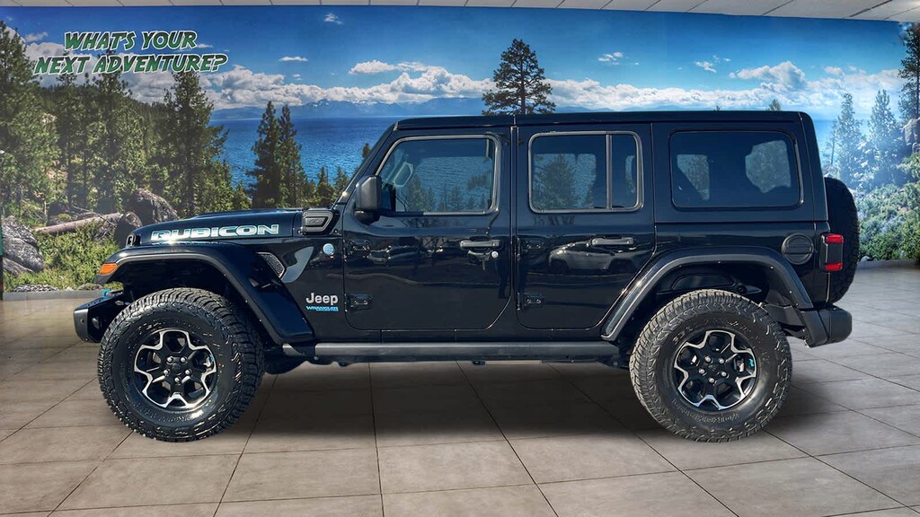 BODY COLOR 3-PIECE HARD TOP Freedom Panel Storage Bag, Rear Window Defroster, Rear Window Wiper/Washer, BLACK, LEATHER TRIMMED BUCKET SEATS Premium Wrapped I/P Bezels, Leather Wrapped Park Brake Handle, Leather Wrapped Shift Knob, Premium Door Trim Panel, COLD WEATHER GROUP Heated Steering Wheel, Remote Start System, Heated Front Seats, TRAILER TOW & HD ELECTRICAL GROUP Class II Receiver Hitch, 700 Amp Maintenance Free Battery, 7 & 4 Pin Wiring Harness, Auxiliary Switches, REMOTE PROXIMITY KEYLESS ENTRY, TRANSMISSION: 8-SPEED AUTO 8P75PH PHEV (STD), ENGINE: 2.0L I4 DOHC DI TURBO PHEV (STD). Jeep Unlimited Rubicon with Black Clearcoat exterior and Black interior features a 4 Cylinder Engine with 375 HP at 5250 RPM*.