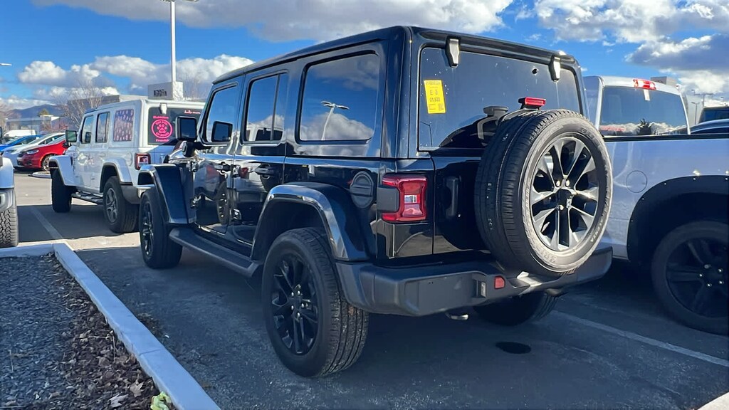 BODY COLOR 3-PIECE HARD TOP Freedom Panel Storage Bag, Rear Window Defroster, Rear Window Wiper/Washer, REMOTE PROXIMITY KEYLESS ENTRY, REMOTE START SYSTEM, TRANSMISSION: 8-SPEED AUTO 8P75PH PHEV (STD), ENGINE: 2.0L I4 DOHC DI TURBO PHEV (STD). Jeep Unlimited Sahara with Black Clearcoat exterior and Black interior features a 4 Cylinder Engine with 375 HP at 5250 RPM*.
