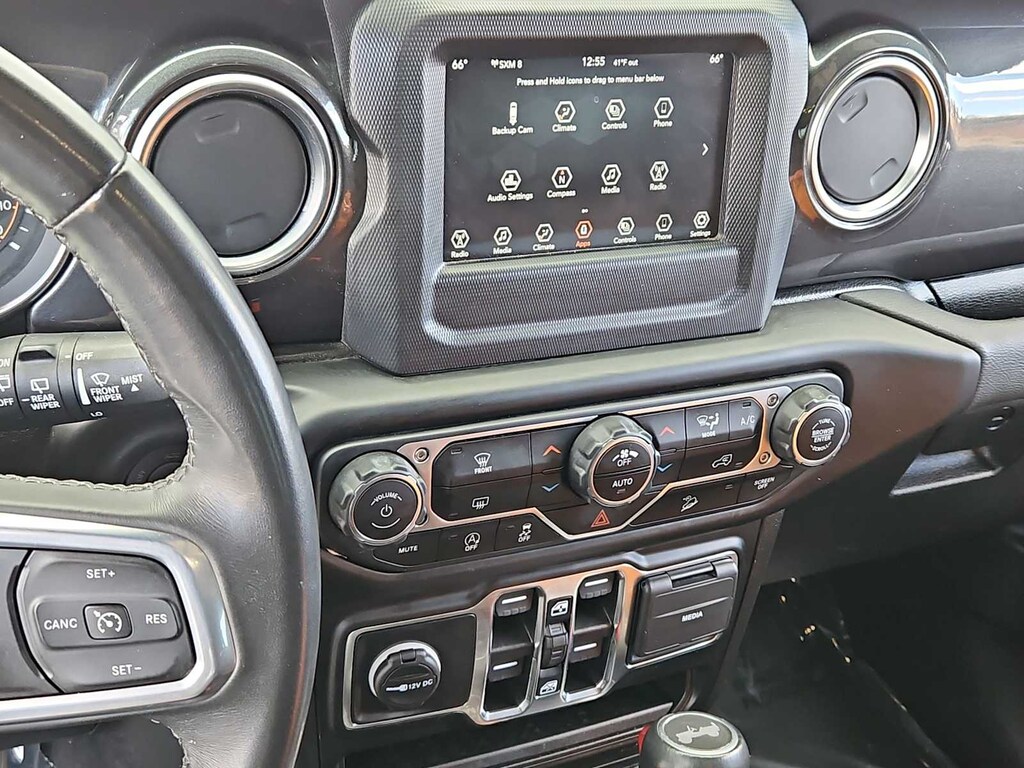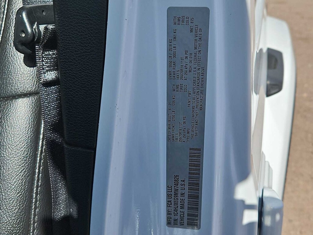 3.45 Rear Axle Ratio, 4-Wheel Disc Brakes, 8 Speakers, ABS brakes, Air Conditioning, Alloy wheels, Altitude Package, AM/FM radio: SiriusXM, Apple CarPlay, Apple CarPlay/Android Auto, Automatic temperature control, Aux Battery, Black Interior Accents, Black Trail Rated Badge, Body Color 3-Piece Hard Top, Body Color Grille w/Gloss Black Rings, Brake assist, Cloth Low-Back Bucket Seats, Compass, Delay-off headlights, Driver door bin, Driver vanity mirror, Dual front impact airbags, Dual front side impact airbags, Electronic Stability Control, Front anti-roll bar, Front Bucket Seats, Front Center Armrest w/Storage, Front dual zone A/C, Front fog lights, Front License Plate Bracket, Front reading lights, Fully automatic headlights, Garage door transmitter, Google Android Auto, GPS Antenna Input, Heated door mirrors, Heavy Duty Suspension w/Gas Shocks, Illuminated entry, Integrated roll-over protection, Integrated Voice Command w/Bluetooth, Jeep Trail Rated Kit, Leather steering wheel, Leather Trimmed Bucket Seats, Leather Wrapped Park Brake Handle, Leather Wrapped Shift Knob, Low tire pressure warning, Manufacturers Statement of Origin, Matte Black Jeep Badge, Mold In Color Bumper w/Gloss Black, MOPAR All-Weather Floor Mats (DISC), MOPAR Hardtop Headliner, Non-Lock Fuel Cap w/o Discriminator, Occupant sensing airbag, Outside temperature display, Panic alarm, ParkView Rear Back-Up Camera, Passenger door bin, Passenger vanity mirror, Power door mirrors, Power steering, Power windows, Quick Order Package 25L Altitude (DISC), Radio data system, Radio: Uconnect 4 w/7 Display, Rear anti-roll bar, Rear reading lights, Remote keyless entry, Remote Proximity Keyless Entry, Remote Start System, Security system, Speed control, Split folding rear seat, Steering wheel mounted audio controls, Stop-Start Dual Battery System, Tachometer, Telescoping steering wheel, Tilt steering wheel, Traction control, Trip computer, Variably intermittent wipers, Voltmeter, Wheels: 18 x 7.5 Gloss Black Aluminum, Wheels: 18 x 7.5 Polished w/Gray Spokes, Wizard Black Instrument Panel Bezels.