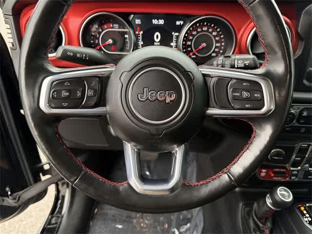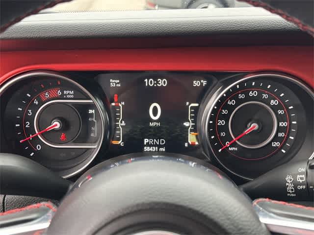 THIS VEHICLE ALSO IS EQUIPPED WITH THE FOLLOWING OPTIONS AND FEATURES: Cold Weather Group (Heated Front Seats and Heated Steering Wheel), LED Lighting Group (Daytime Running Lamps LED Accents, Front LED Fog Lamps, LED Premium Reflector Headlamps, and LED Taillamps), Quick Order Package 26R, Trailer Tow & HD Electrical Group (240 Amp Alternator, 7 & 4 Pin Wiring Harness, 700 Amp Maintenance Free Battery, Auxiliary Switches, and Class II Receiver Hitch), 4-Wheel Disc Brakes, 8 Speakers, ABS brakes, Air Conditioning, Alloy wheels, AM/FM radio: SiriusXM, Apple CarPlay/Android Auto, Automatic temperature control, Aux Battery, Black 3-Piece Hard Top, Brake assist, Compass, Delay-off headlights, Driver door bin, Driver vanity mirror, Dual front impact airbags, Dual front side impact airbags, Electronic Stability Control, Freedom Panel Storage Bag, Front anti-roll bar, Front Bucket Seats, Front Center Armrest w/Storage, Front dual zone A/C, Front fog lights, Front reading lights, Fully automatic headlights, Garage door transmitter, Heated door mirrors, Illuminated entry, Integrated roll-over protection, Leather steering wheel, Low tire pressure warning, MOPAR All-Weather Floor Mats (DISC), No Soft Top, Non-Lock Fuel Cap w/o Discriminator, Occupant sensing airbag, Outside temperature display, Panic alarm, ParkView Rear Back-Up Camera, Passenger door bin, Passenger vanity mirror, Performance Suspension, Power door mirrors, Power steering, Power windows, Premium Cloth Low-Back Bucket Seats, Radio data system, Radio: Uconnect 4 w/7 Display, Rear anti-roll bar, Rear reading lights, Rear Window Defroster, Rear Window Wiper/Washer, Remote keyless entry, Remote Start System, Security system, Speed control, Split folding rear seat, Steering wheel mounted audio controls, Stop-Start Dual Battery System, Tachometer, Telescoping steering wheel, Tilt steering wheel, Traction control, Trip computer, Variably intermittent wipers, Voltmeter, and Wheels: 17 x 7.5 Machined w/Black Pockets.