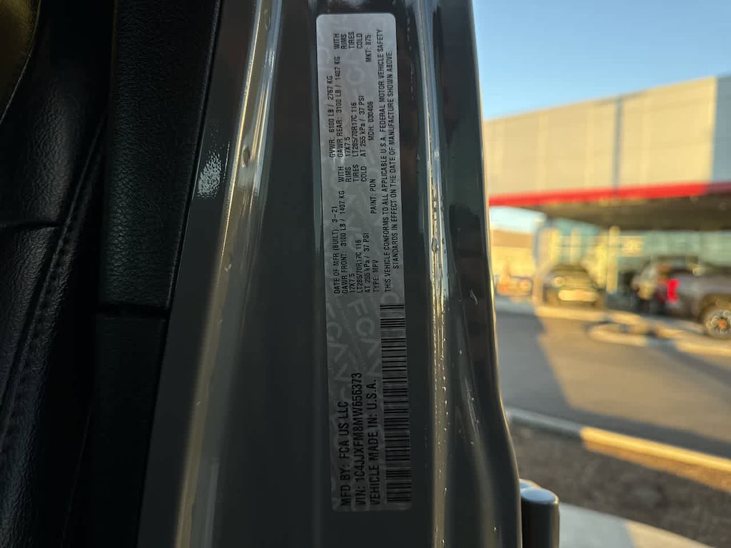 ENGINE: 3.0L V6 TURBO DIESEL W/ESS G3 Selective Catalytic Reduction (Urea), Non-Lock Fuel Cap w/Discriminator, Gray EcoDiesel Badge, GVWR: 6,100 lbs, 18.3 Gallon Fuel Tank, 3.73 Rear Axle Ratio, BODY COLOR 3-PIECE HARD TOP, TRANSMISSION: 8-SPEED AUTOMATIC (8HP75), 8.4 RADIO & PREMIUM AUDIO GROUP Off-Road Info Pages, SiriusXM Traffic Plus, Alpine Premium Audio System, HD Radio, Radio: Uconnect 4C Nav w/8.4 Display, For Details, Visit DriveUconnect.com, Rear View Auto Dim Mirror, 1-Year SiriusXM Guardian Trial, GPS Navigation, SiriusXM Travel Link, 4G LTE Wi-Fi Hot Spot, Emergency/Assistance Call, 8.4 Touchscreen Display, COLD WEATHER GROUP Heated Steering Wheel, Heated Front Seats, SAFETY GROUP ParkSense Rear Park Assist System, Blind Spot & Cross Path Detection, TRAILER TOW & HD ELECTRICAL GROUP Class II Receiver Hitch, 700 Amp Maintenance Free Battery, 7 & 4 Pin Wiring Harness, 240 Amp Alternator, Auxiliary Switches, REMOTE PROXIMITY KEYLESS ENTRY. MP3 Player, Privacy Glass, Child Safety Locks, Steering Wheel Controls, Rollover Protection System.