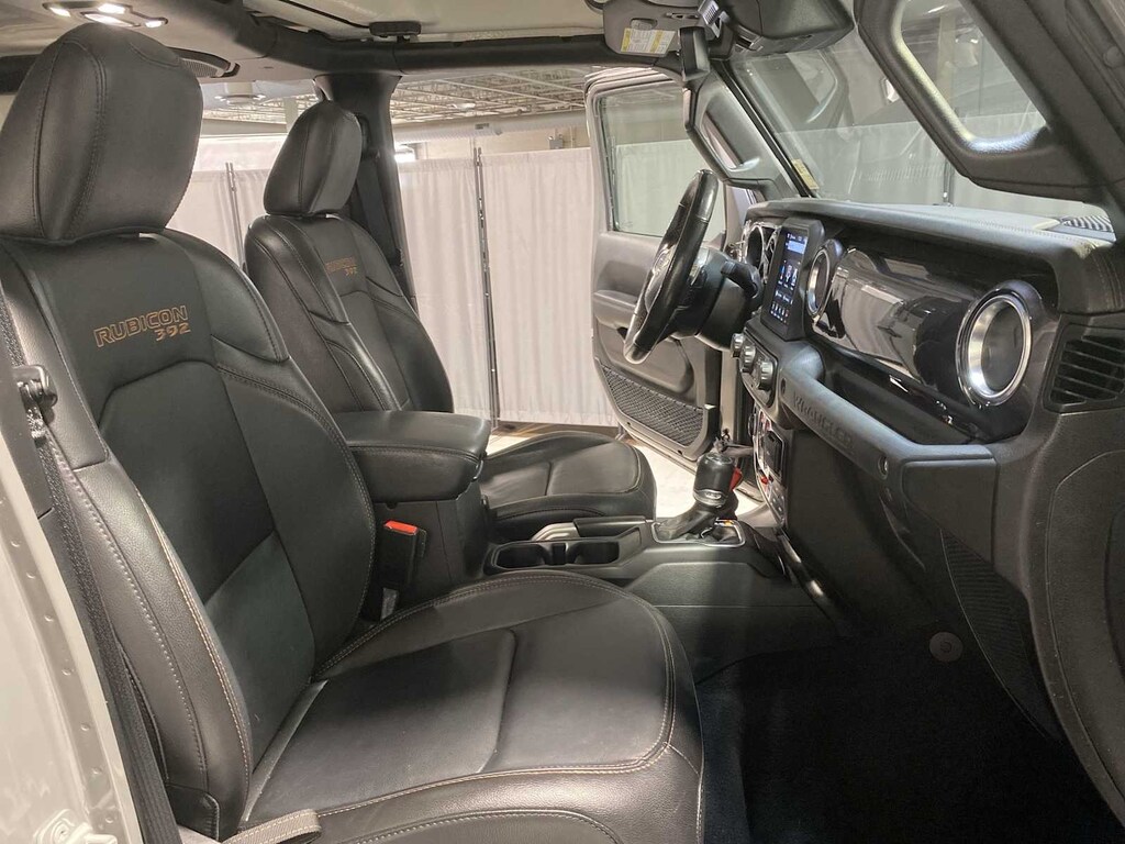Leather Seats, 4x4, Heated Driver Seat, Back-Up Camera, Premium Sound System, Satellite Radio, iPod/MP3 Input, Onboard Communications System, Convertible Hardtop, Targa Roof, Aluminum Wheels, Remote Engine Start, Dual Zone A/C, Smart Device Integration, Blind Spot Monitor. Jeep Unlimited Rubicon 392 with Sting-Gray Clearcoat exterior and Black interior features a 8 Cylinder Engine with 470 HP at 6000 RPM*.