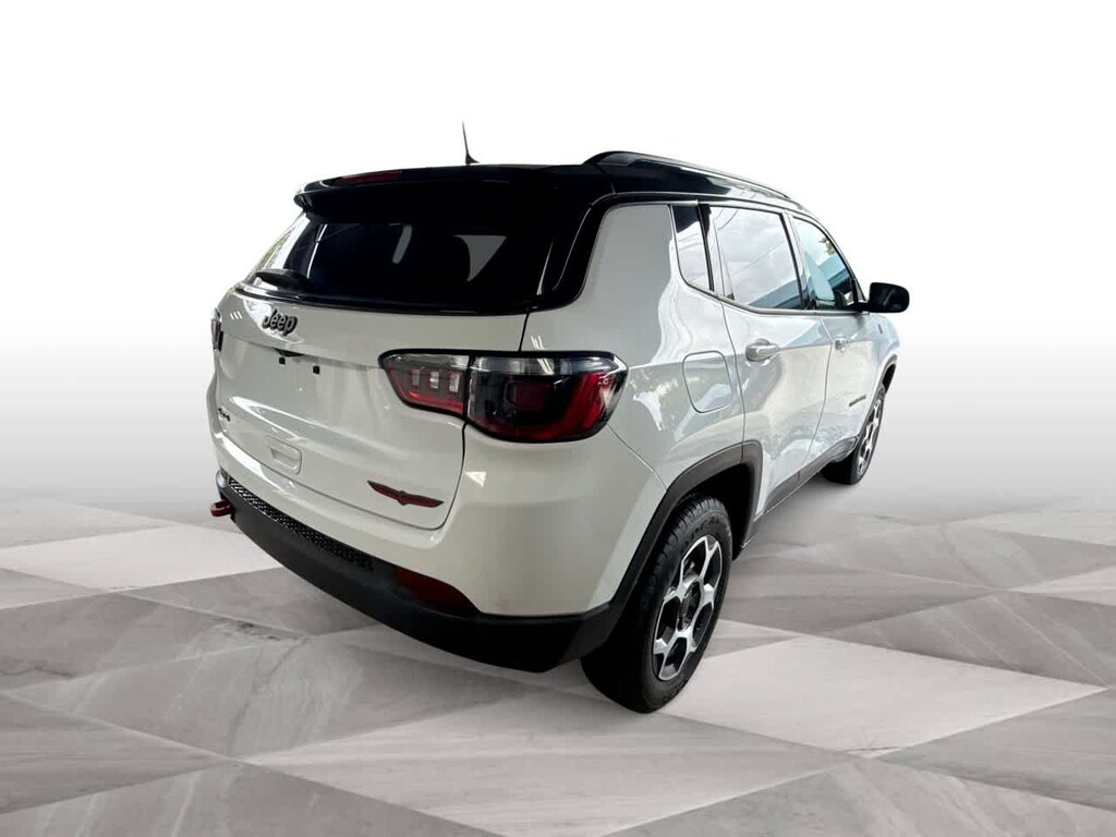 CARFAX One-Owner. Clean CARFAX. 2022 Jeep Compass Trailhawk 4D Sport Utility Bright White Clearcoat Trailhawk 4WD 9-Speed 948TE Automatic 4WD. Odometer is 20181 miles below market average! 22/30 City/Highway MPG