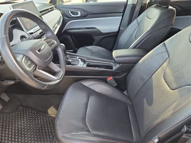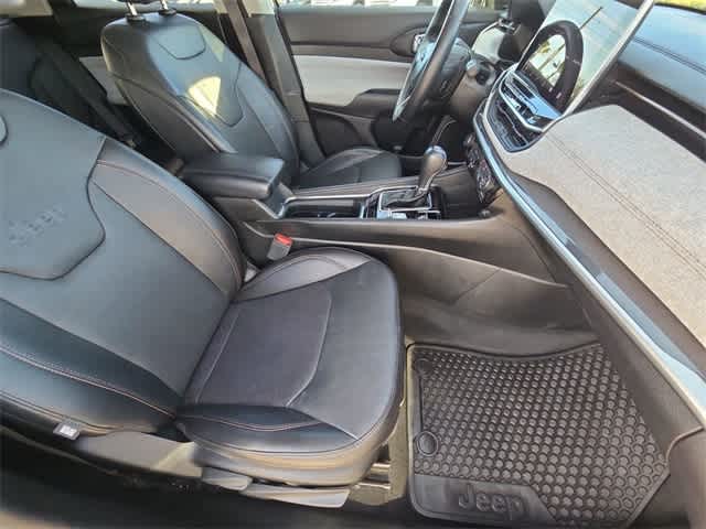 This 2022 Jeep Compass Latitude Lux in Billet Silver Metallic Clearcoat, features Lux Driver Assist (115V Auxiliary Power Outlet, 2nd Row USB Type A/C Charge Only, 360 Surround View Camera System, Adaptive Cruise Control w/Stop & Go, Air Conditioning ATC w/Dual Zone Control, All-Season Floor Mats, Foot Activated Open N Go Liftgate, Humidity Sensor, P&P Park & Unpark Assist System, ParkSense Fr/Rr Park Assist System, Power Liftgate, Premium LED Fog Lamps, Rain Sensitive/Intermittent Wipers, Reversible Carpet/Vinyl Cargo Mat, Universal Garage Door Opener, Windshield Wiper De-Icer, and Wireless Charging Pad), Quick Order Package 2GL, 3.73 Axle Ratio, 4-Wheel Disc Brakes, 6 Speakers, ABS brakes, Air Conditioning, Alloy wheels, AM/FM radio: SiriusXM, Anti-whiplash front head restraints, Auto High-beam Headlights, Auto-dimming Rear-View mirror, Brake assist, Bumpers: body-color, Compass, Delay-off headlights, Driver door bin, Driver vanity mirror, Dual front impact airbags, Dual front side impact airbags, Electronic Stability Control, Emergency communication system: SiriusXM Guardian, Four wheel independent suspension, Front anti-roll bar, Front Bucket Seats, Front Center Armrest w/Storage, Front fog lights, Front reading lights, Fully automatic headlights, Heated door mirrors, Heated front seats, Heated steering wheel, Illuminated entry, Knee airbag, Leather Shift Knob, Leather Trimmed Bucket Seats, Low tire pressure warning, Occupant sensing airbag, Outside temperature display, Overhead airbag, Overhead console, Panic alarm, ParkView Rear Back-Up Camera, Passenger door bin, Passenger vanity mirror, Power door mirrors, Power driver seat, Power steering, Power windows, Radio: Uconnect 5 w/10.1 Display, Rear anti-roll bar, Rear seat center armrest, Rear window defroster, Rear window wiper, Remote keyless entry, Roof rack: rails only, Security system, Speed control, Split folding rear seat, Spoiler, Steering wheel mounted audio controls, Tachometer, Telescoping steering wheel, Tilt steering wheel, Traction control, Trip computer, Variably intermittent wipers, and Wheels: 18 x 7.0 Painted Aluminum: