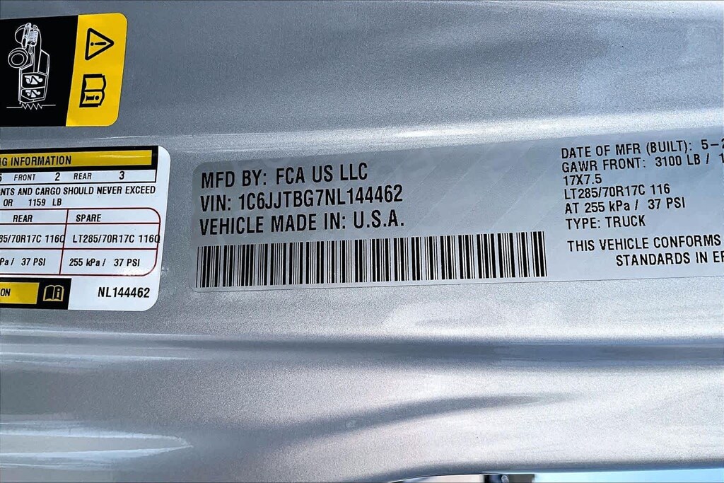 Lithia Chrysler Dodge Jeep Ram of Tri-Cities is pleased to offer this Silver Zynith Clearcoat 2022 Jeep Gladiator Rubicon for purchase, this vehicle is well equipped with many features including:Cold Weather Group (Heated Front Seats and Heated Steering Wheel), LED Lighting Group (Daytime Running Lamps LED Accents, Front LED Fog Lamps, LED Park Turn Lamps, LED Premium Reflector Headlamps, and LED Taillamps), Quick Order Package 24R, Trailer Tow Package (240 Amp Alternator, Class IV Receiver Hitch, Heavy-Duty Engine Cooling, and Trailer Hitch Zoom), 4-Wheel Disc Brakes, 4.10 Rear Axle Ratio, 9 Speakers, 97 MPH Vehicle Max Speed Calibration, ABS brakes, Air Conditioning, Alloy wheels, AM/FM radio: SiriusXM, Apple CarPlay/Android Auto, Auto-dimming Rear-View mirror, Automatic temperature control, Black 3-Piece Hard Top, Brake assist, Compass, Delay-off headlights, Driver door bin, Driver vanity mirror, Dual front impact airbags, Dual front side impact airbags, Electronic Stability Control, Emergency communication system: SiriusXM Guardian, Freedom Panel Storage Bag, Front anti-roll bar, Front Bucket Seats, Front Center Armrest w/Storage, Front dual zone A/C, Front fog lights, Front License Plate Bracket, Front reading lights, Fully automatic headlights, Garage door transmitter, Heated door mirrors, Illuminated entry, Integrated roll-over protection, Leather steering wheel, Low tire pressure warning, MOPAR All-Weather Slush Mats, Navigation System, Occupant sensing airbag, Outside temperature display, Panic alarm, ParkView Rear Back-Up Camera, Passenger door bin, Passenger vanity mirror, Performance Suspension, Power door mirrors, Power steering, Power windows, Premium Cloth Low-Back Bucket Seats, Radio data system, Radio: Uconnect 4C Nav w/8.4 Display, Rear anti-roll bar, Rear reading lights, Rear Sliding Window, Rear Window Defroster, Remote keyless entry, Remote Start System, Security system, Speed control, Split folding rear seat, Steering wheel mounted audio controls, Tachometer, Telescoping steering wheel, Tilt steering wheel, Traction control, Trip computer, Variably intermittent wipers, Voltmeter, and Wheels: 17 x 7.5 Granite Crystal Aluminum. 2022 Jeep Gladiator Rubicon
