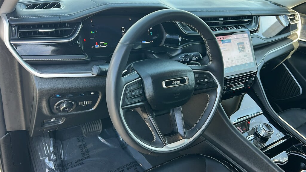 DUAL-PANE PANORAMIC SUNROOF, TRANSMISSION: 8-SPEED AUTOMATIC 8P75PH PHEV (STD), ENGINE: 2.0L I4 DOHC DI TURBO PHEV (STD), RADIO: UCONNECT 5 NAV W/10.1 DISPLAY 10.1 Touchscreen Display, HD Radio, Front Passenger Interactive Display, GPS Navigation, Pur Wrapped Instrument Panel, All Radio Equipped Vehicles, Connected Travel & Traffic Services. Jeep Grand Cherokee 4xe with Silver Zynith exterior and Global Black interior features a 4 Cylinder Engine with 375 HP at 5250 RPM*.