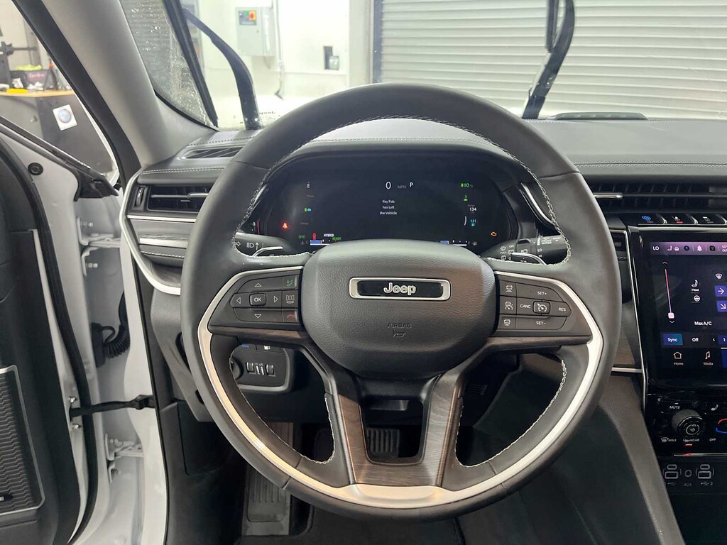 DUAL-PANE PANORAMIC SUNROOF, TRANSMISSION: 8-SPEED AUTOMATIC 8P75PH PHEV (STD), ENGINE: 2.0L I4 DOHC DI TURBO PHEV (STD), RADIO: UCONNECT 5 NAV W/10.1 DISPLAY 10.1 Touchscreen Display, HD Radio, Front Passenger Interactive Display, GPS Navigation, Pur Wrapped Instrument Panel, All Radio Equipped Vehicles, Connected Travel & Traffic Services. Jeep Grand Cherokee 4xe with Bright White Clearcoat exterior and Global Black interior features a 4 Cylinder Engine with 375 HP at 5250 RPM*.